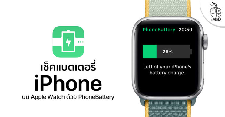 สำหรับผู้ใช้ Apple Watch ที่อยากจะเช็คเปอร์เซ็นต์แบตเตอรี่ของ iPhone ที่จับคู่อยู่ ทีมงานมีแอปชื่อว่า PhoneBattery ที่เป็นแอปสำหรับการดูแบตเตอรี่คงเหลือของ iPhone โดยเฉพาะมาแนะนำให้ชมกันค่ะ