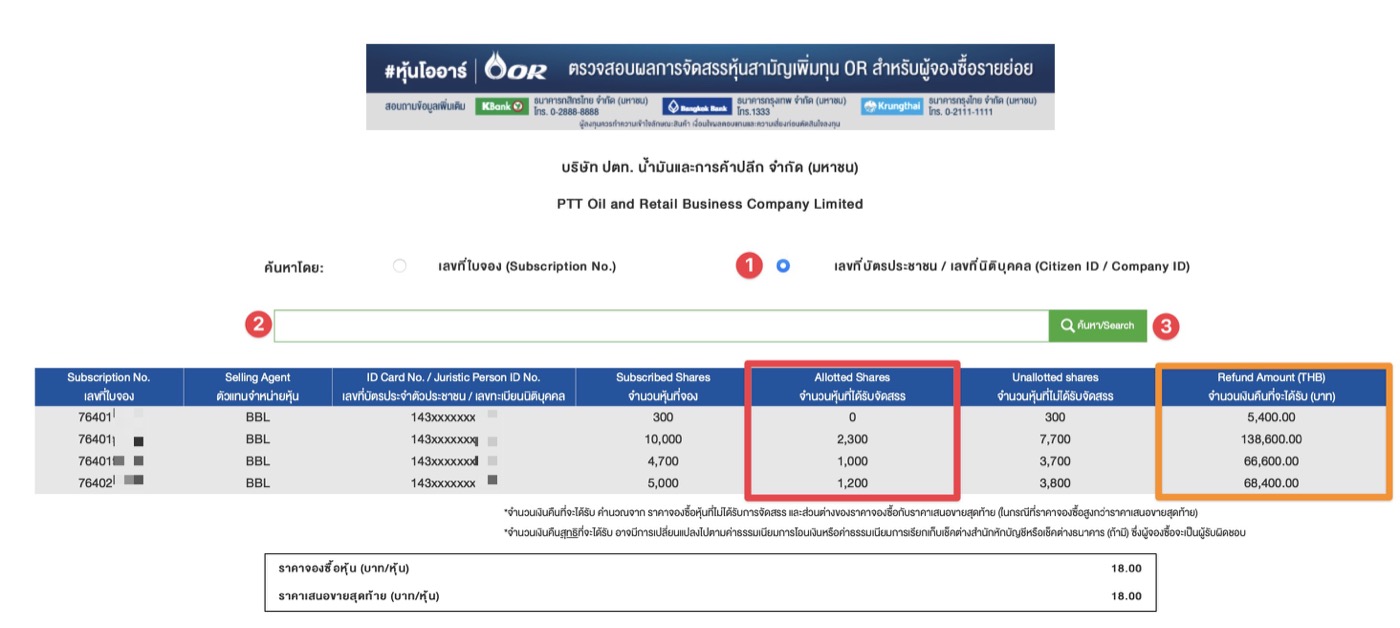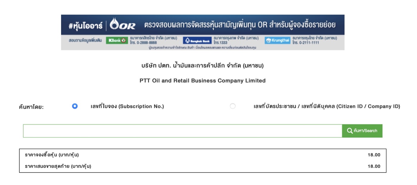 วิธีเช็คจำนวนหุ้น (บริษัท ปตท. น้ำมันและการค้าปลีก จำกัด (มหาชน) หรือ OR หลังจากที่เปิดให้รายย่อยจองไปก่อนหน้านี้ มาดูกันว่าหุ้นที่จองไปนั้นเราจะได้รับการจัดสรรเท่าไหร่ ดูได้ตามนี้