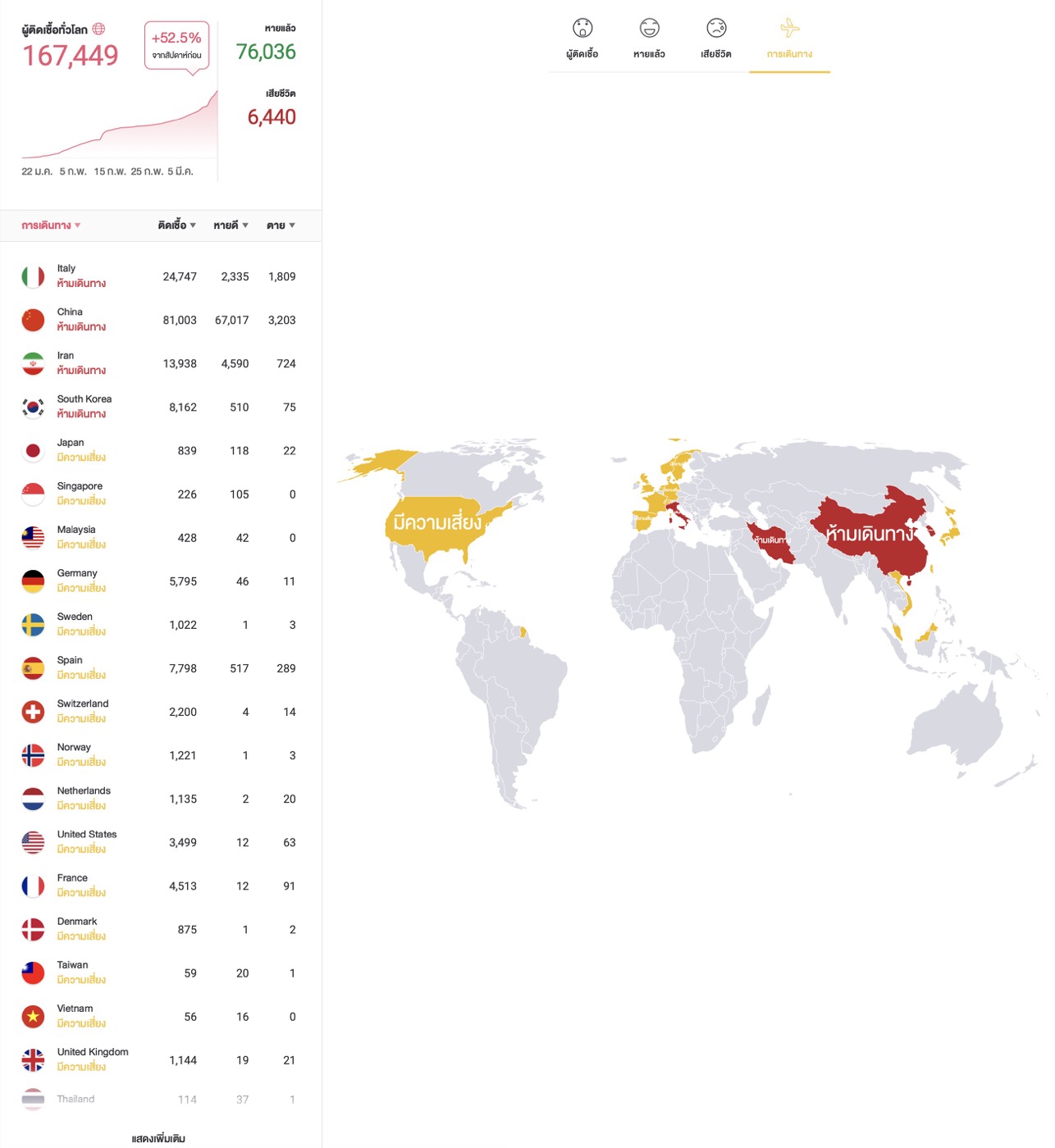 • ประเทศที่ห้ามเดินทางและประเทศเสี่ยง