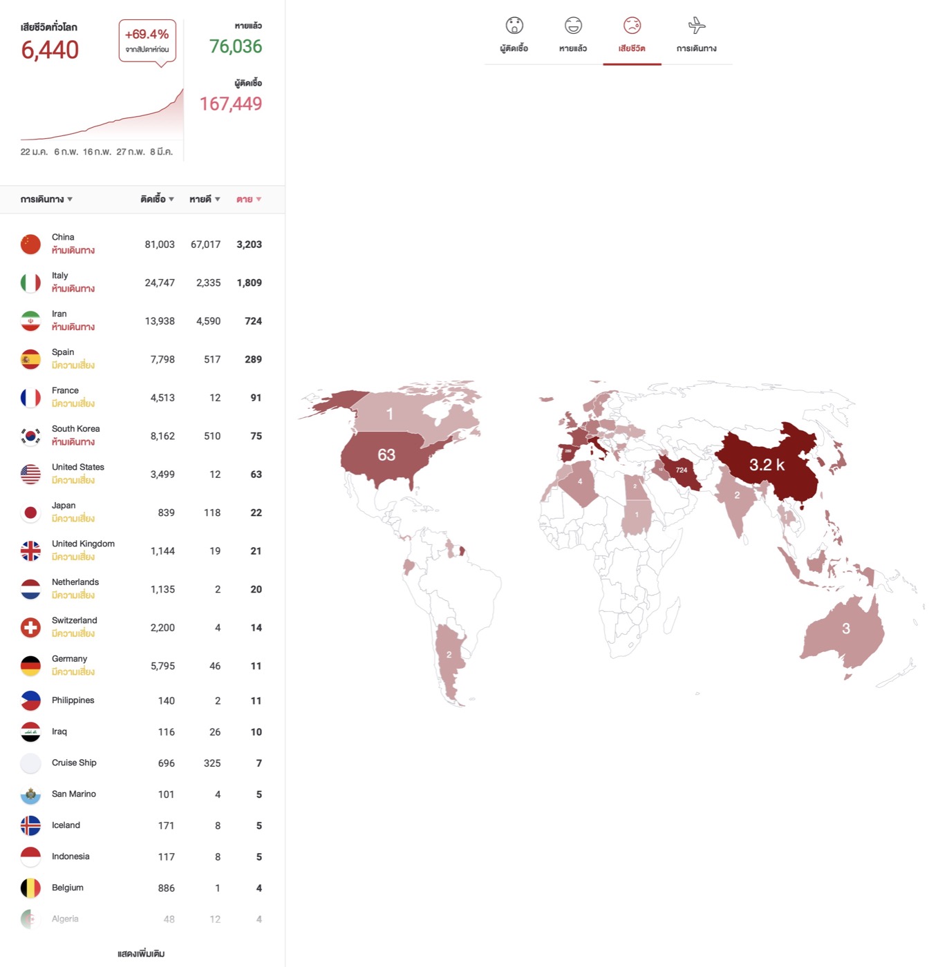 • ไอคอนคนสีดำ คือ ผู้ป่วยเสียชีวิต