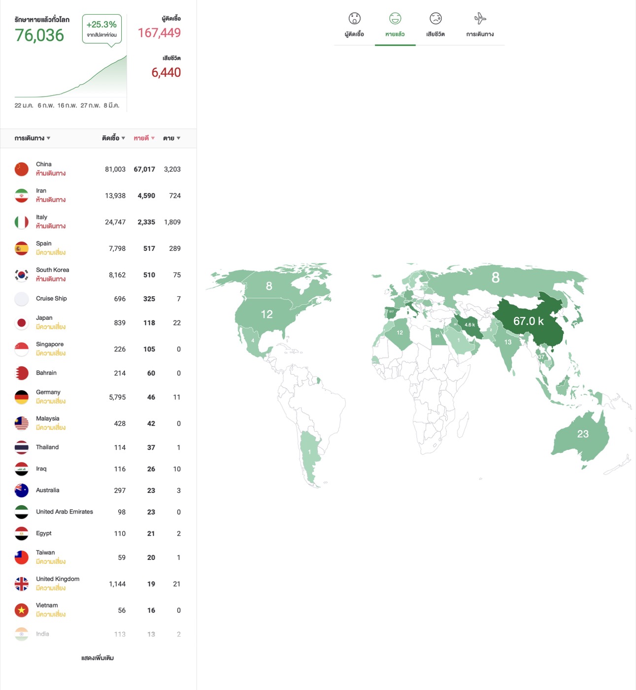 • ไอคอนคนสีเขียว หมายถึง รักษาหายแล้ว