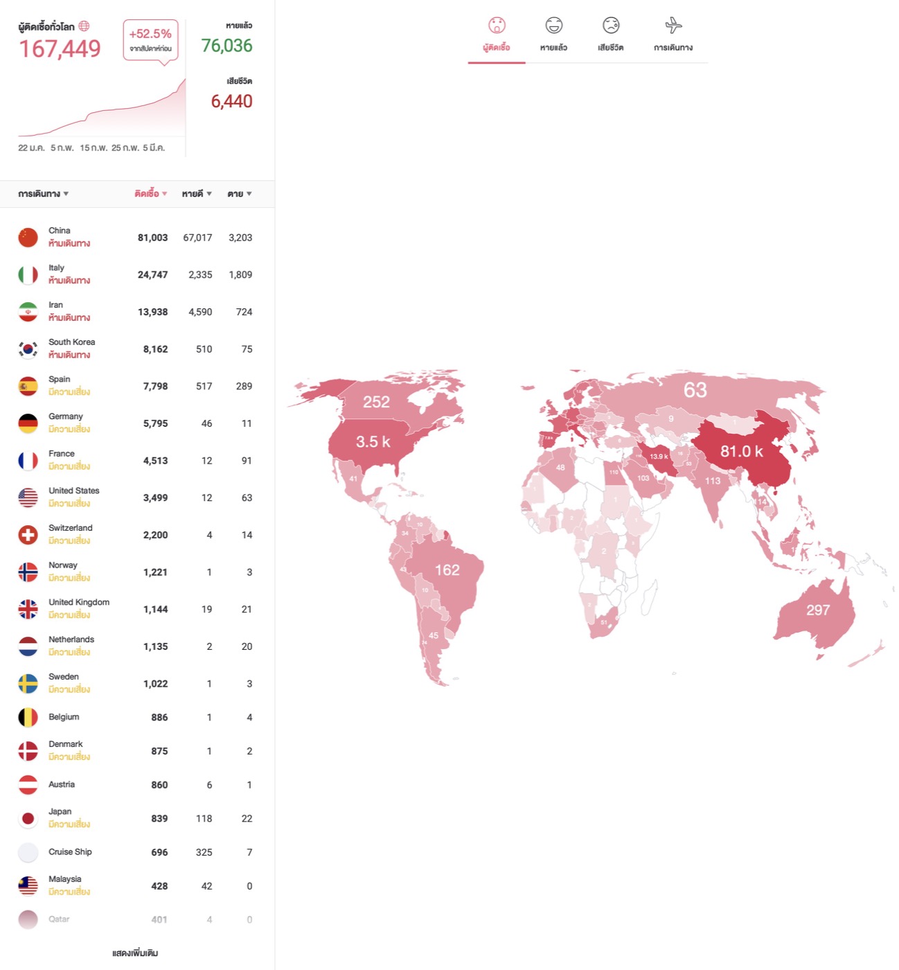 เช็คข้อมูล COVID-19 ล่าสุด ยอดผู้ติดเชื้อ เสียชีวิตและยังคงรักษา ฉบับภาษาไทย