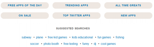 นอกจาก Chomp จะเป็นเครื่องมือช่วยในการค้นหาแอปฯแล้ว Chomp ยังสร้างเมนูที่แนะนำแอปฯที่แบ่งเป็นหมวดหมู่ตามการใช้งานเอาไว้ให้เลือกอีกด้วย แถมยังมีการรวมแอปฯที่ให้ดาวน์โหลดในแต่ละวันอีกต่างหาก