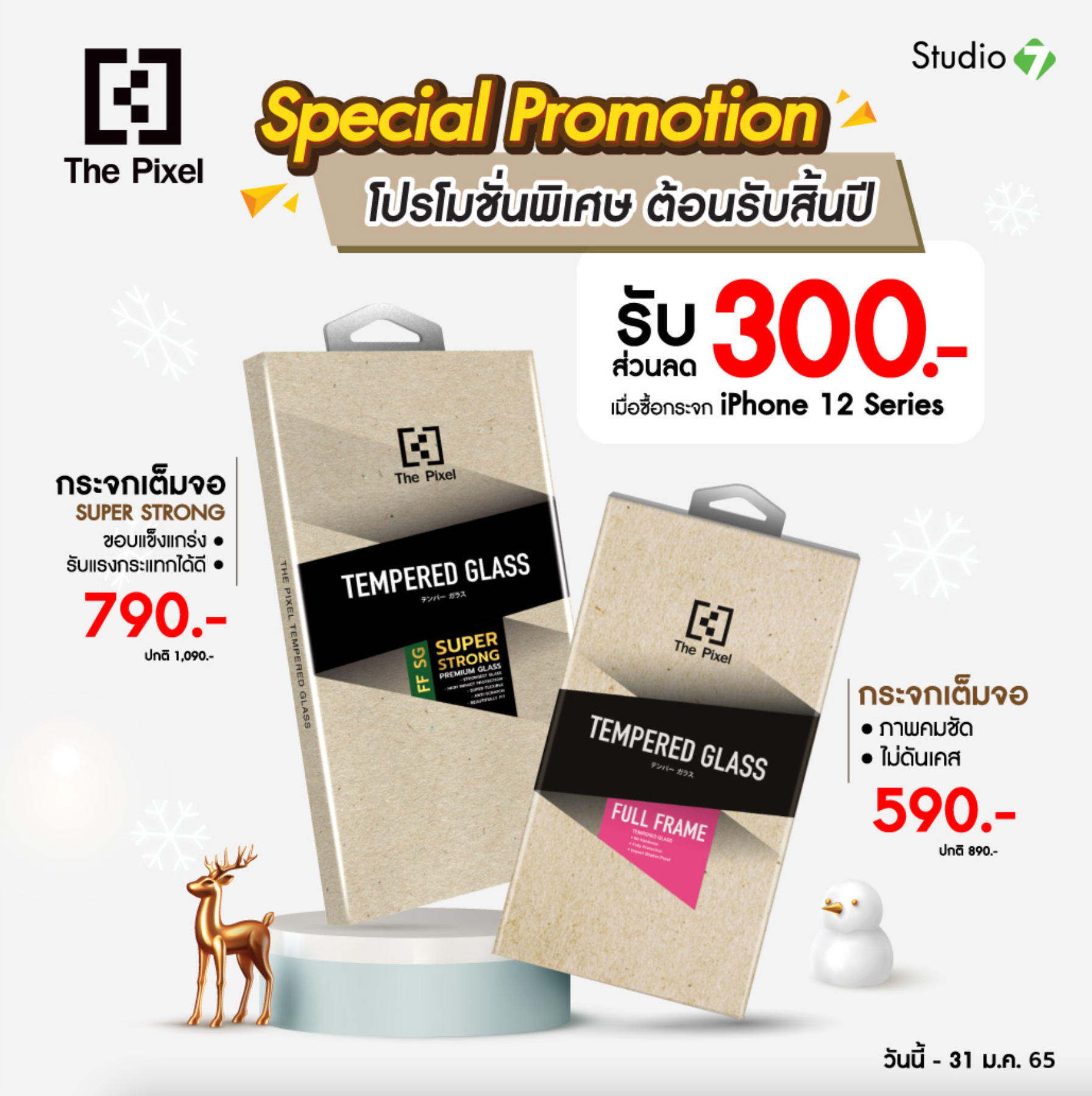 Studio 7 X The Pixel ลดรับสิ้นปี รับส่วนลด 300 บาท เมื่อซื้อกระจกกันรอยสำหรับ iPhone 12 เริ่มต้นเพียง 590.-