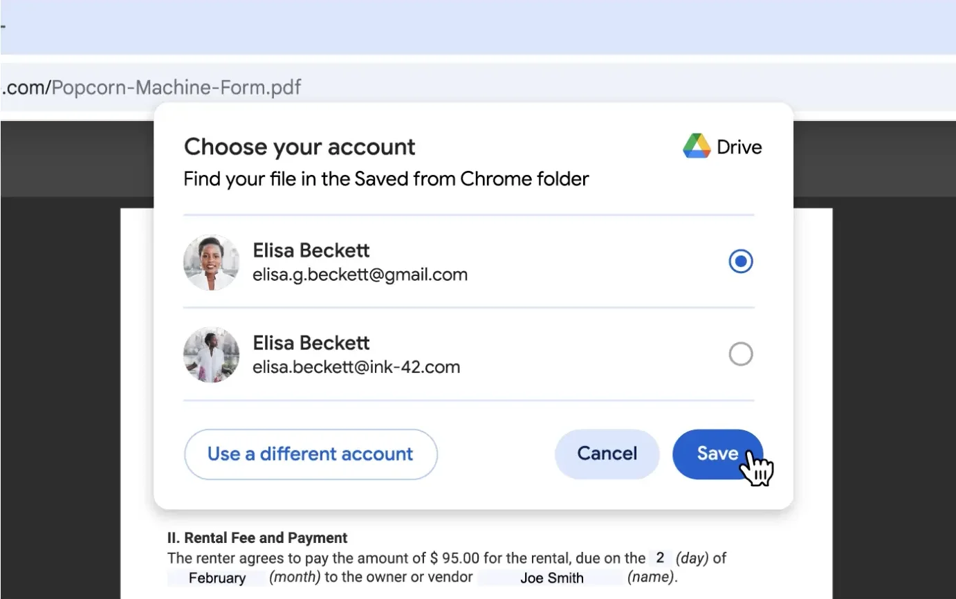สามารถบันทึกไฟล์ PDF ไปที่ Drive โฟลเดอร์ “Saved from Chrome” ให้โดยตรงจาก Chrome ทำให้เอกสารของผู้ใช้ถูกสำรองข้อมูล เป็นระเบียบ และค้นหาง่ายในภายหลังจากหลาย ๆ อุปกรณ์