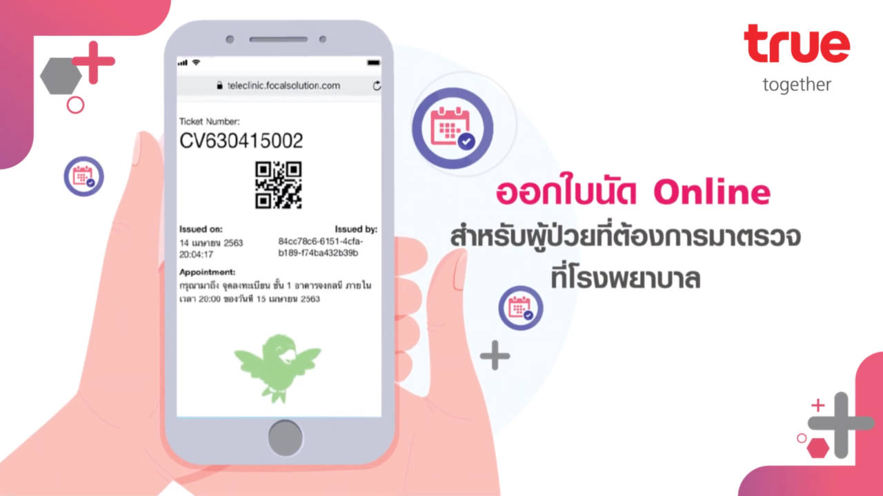 - นัดหมายและออกใบนัดพบแพทย์แบบออนไลน์ กรณีที่แพทย์มีความเห็นให้ผู้ป่วยต้องเข้ามาทำการตรวจรักษา