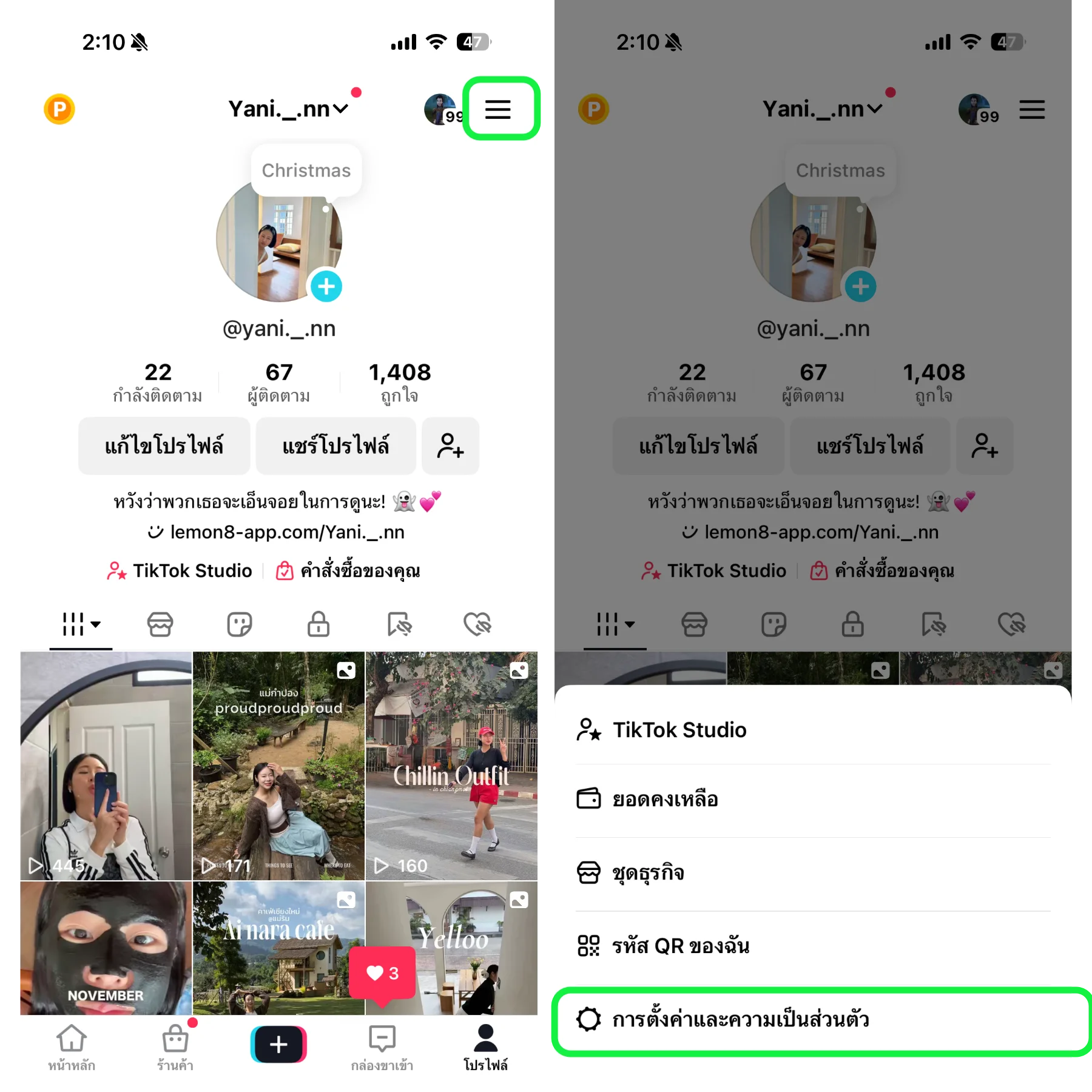 - แตะที่ โปรไฟล์ (มุมล่างขวา)