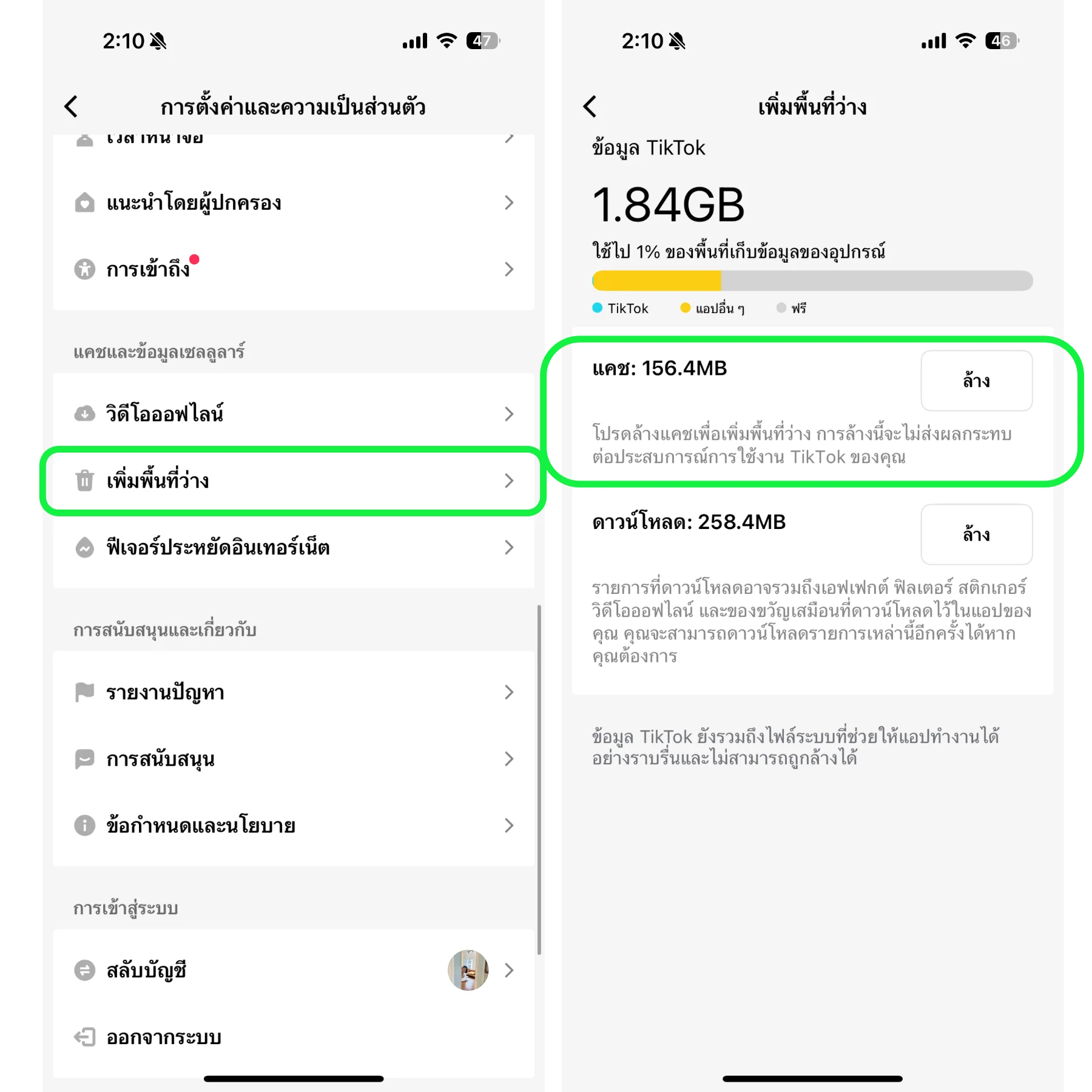 วิธีล้างแคช คืนพื้นที่เครื่องจากแอป TikTok