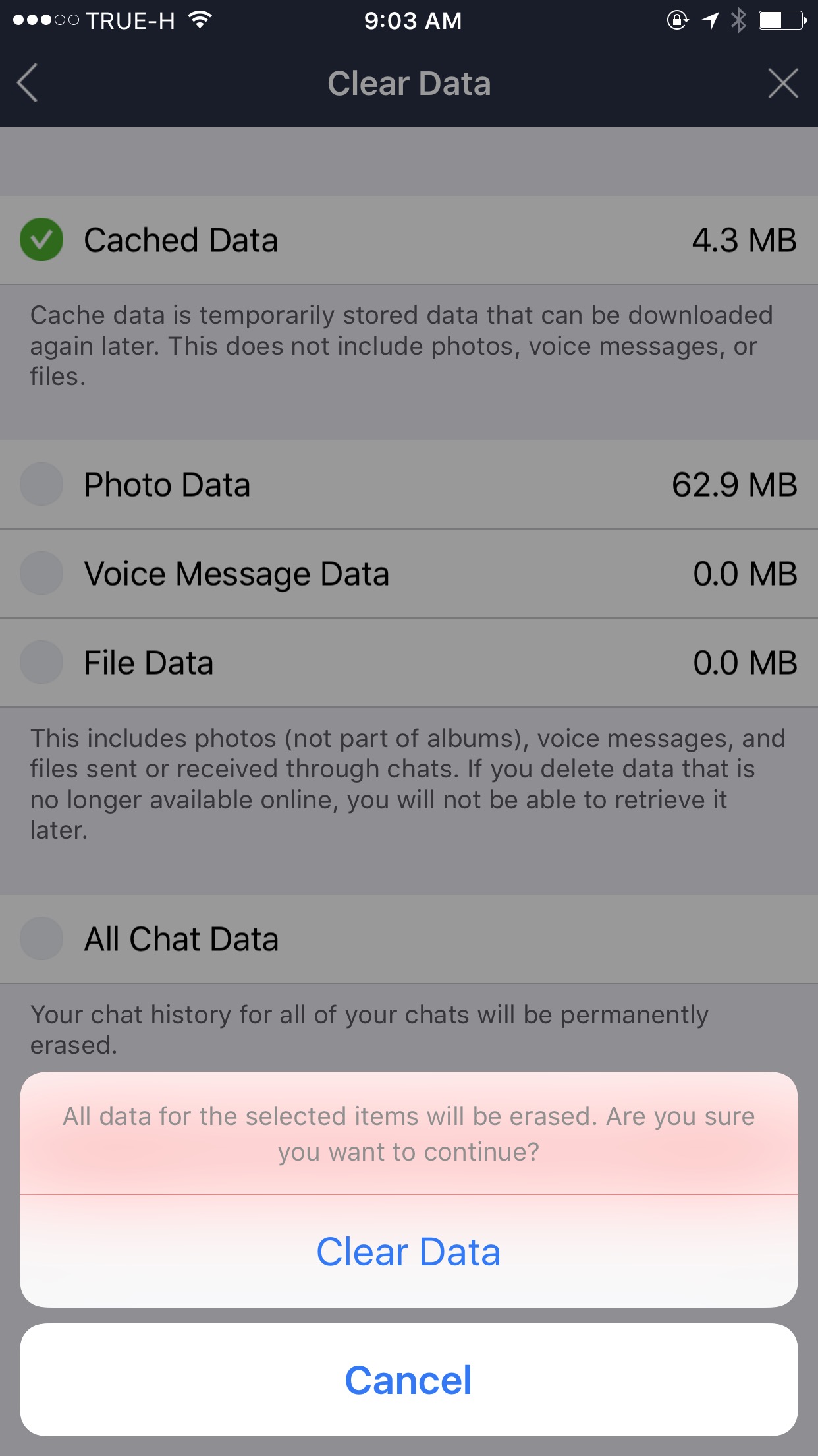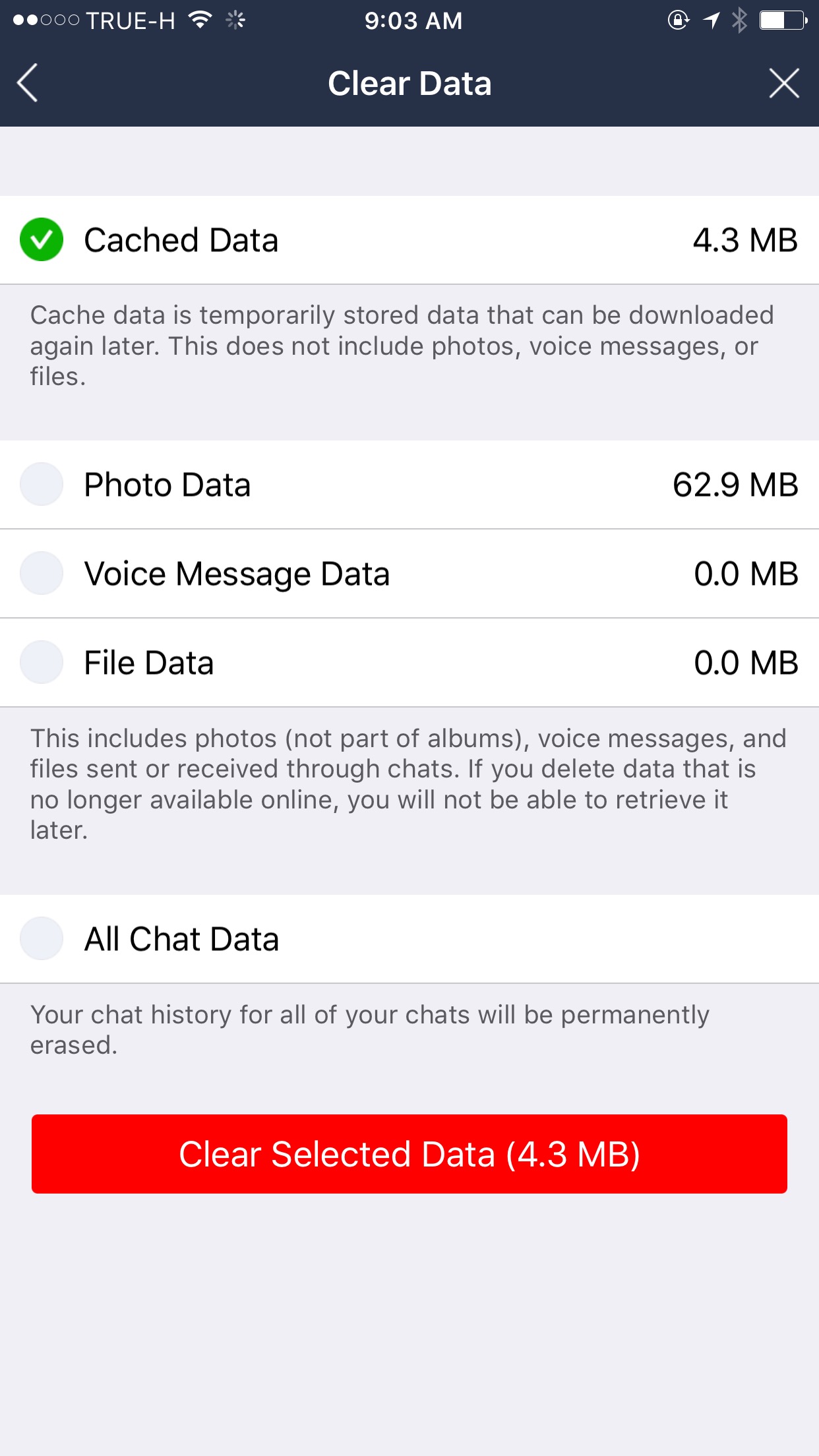 - More…> Settings (รูปเฟืองที่บนขวา)> Chat & Voice Call> Clear Data> เลือกที่ Cached Data> แล้วเลือกที่ Clear Selected Data