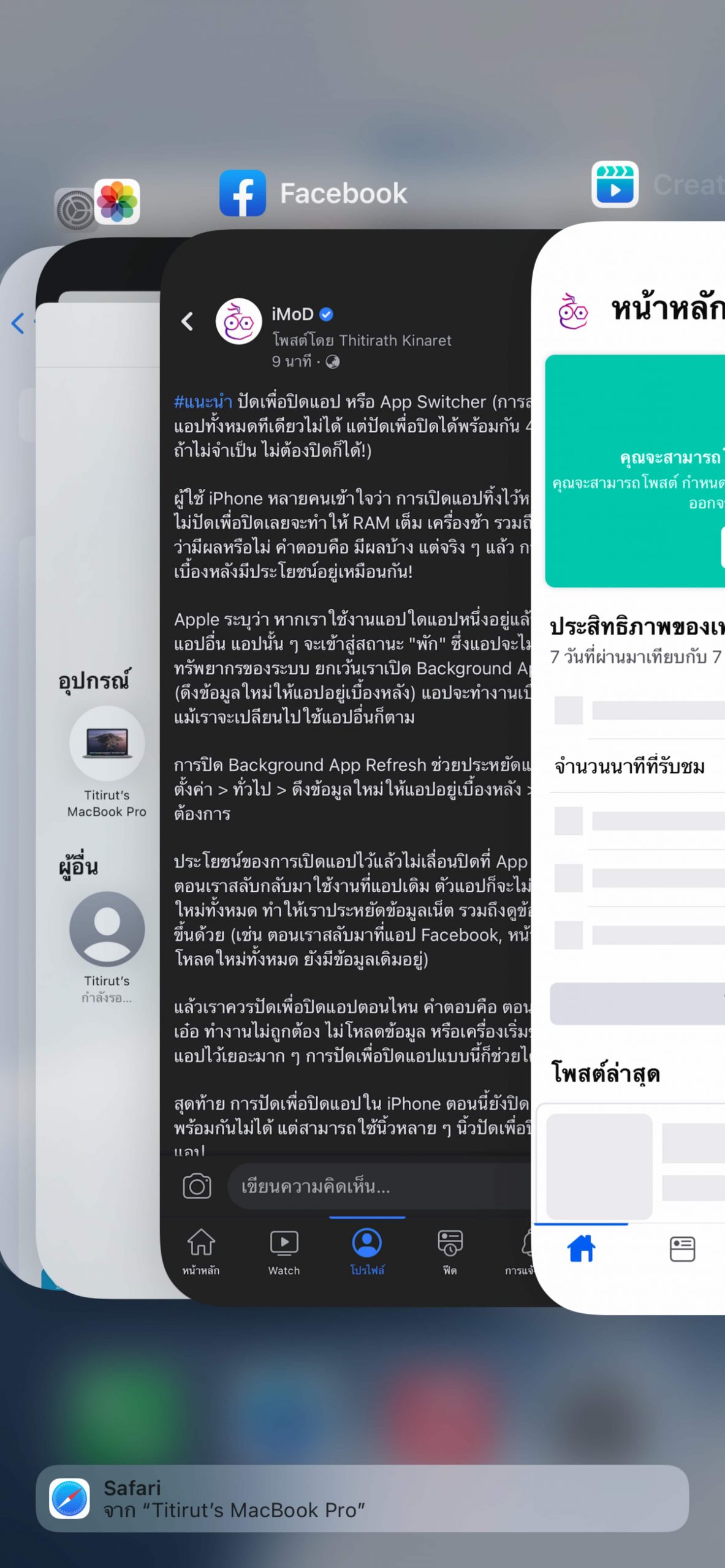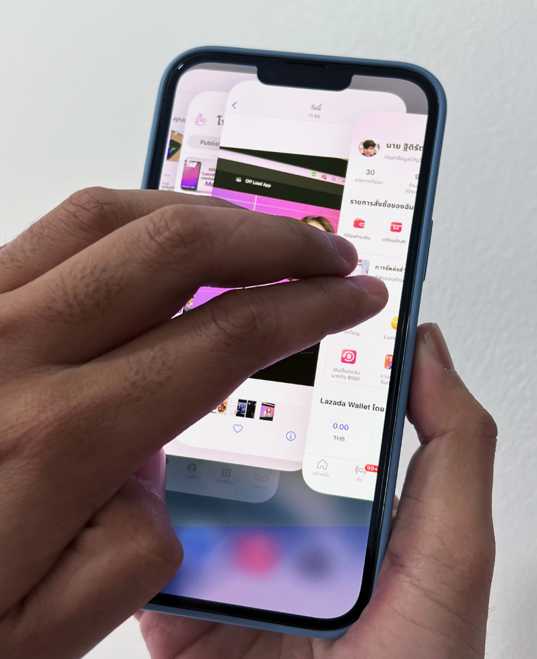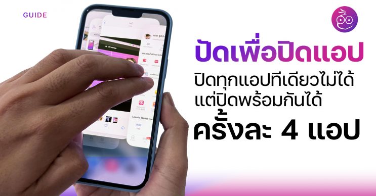 ปัดเพื่อปิดแอป หรือ App Switcher (การสลับแอป) ใช้ปิดแอปทั้งหมดทีเดียวไม่ได้ แต่ปัดเพื่อปิดได้พร้อมกัน 4 แอป (แนะนำถ้าไม่จำเป็น ไม่ต้องปิดก็ได้!)