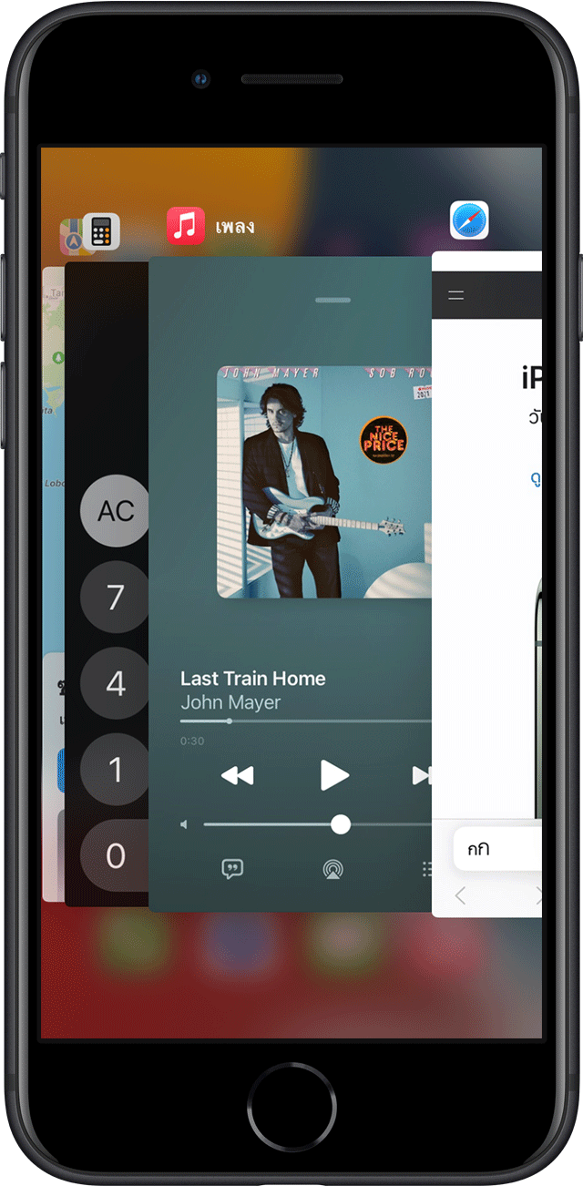 iPhone รุ่นปุ่ม Home ให้กดปุ่ม Home สองครั้ง