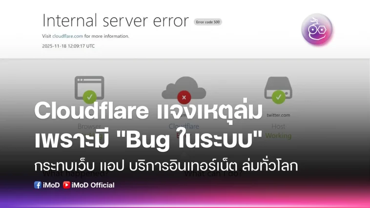 เมื่อช่วงกลางดึกวันที่ 18 พ.ย. 2025 ตามเวลาบ้านเรา หลายบริการเช่น ChatGPT, Claude, Spotify และ X ไม่สามารถใช้งานได้ เนื่องจากปัญหาขัดข้องในระบบของ Cloudflare ที่เป็นผู้ให้บริการโครงสร้างพื้นฐานอินเทอร์เน็ตที่ใหญ่ที่สุดในโลก