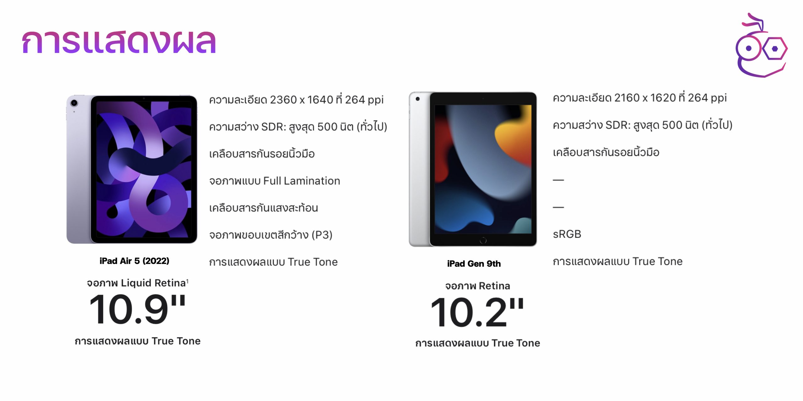 มาดูกันว่า iPad Air 5 ที่เปิดตัวในงาน Apple Event Peek Performance เมื่อเปรียบเทียบสเปกกับ iPad Gen 9 จะมีความเหมือนหรือแตกต่างกันอย่างไร รุ่นไหนตอบโจทย์มากที่สุด ไปชมกัน
