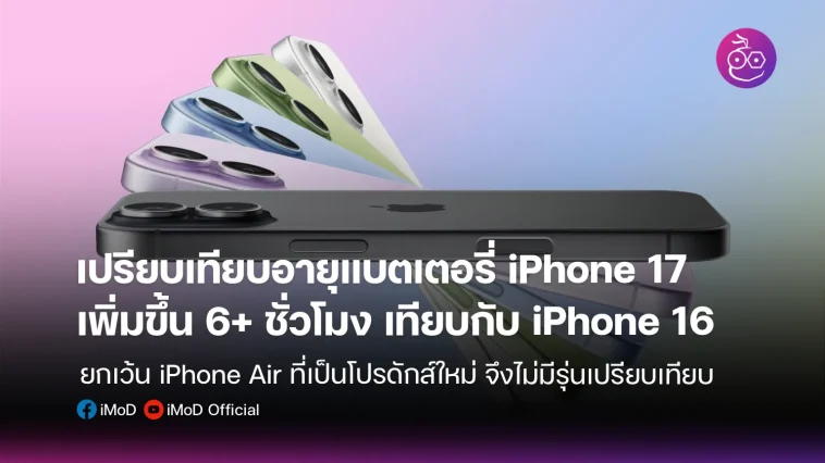 เปรียบเทียบอายุแบตเตอรี่ iPhone 17 เพิ่มขึ้น 6+ ชั่วโมงเมื่อเทียบกับ iPhone 16