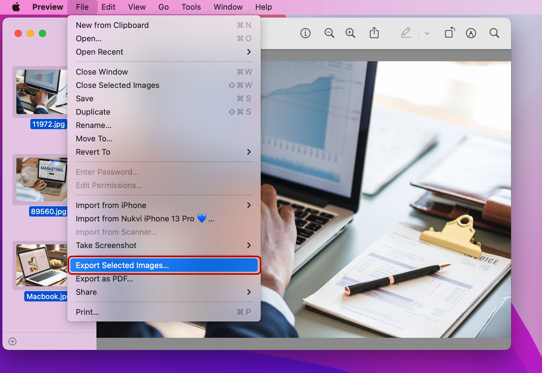 - เลือกรูปทั้งหมด หรือ Command + A จากนั้นกด Preview