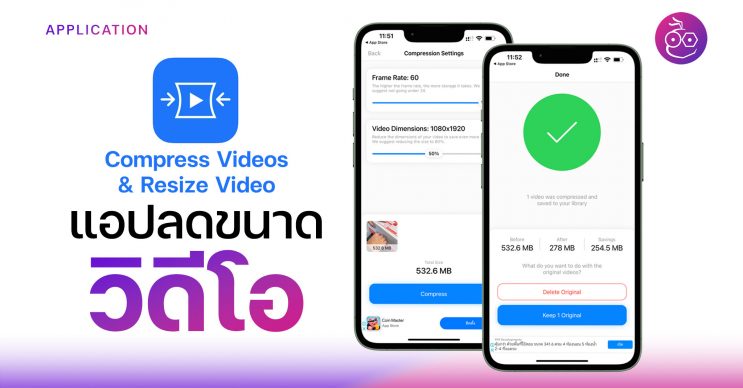 Compress Videos & Resize Video เป็นแอปฟรีที่น่าสนใจมาก สามารถลดขนาดวิดีโอได้ทั้ง Frame Rate, Dimension ช่วยประหยัดพื้นที่เครื่องได้มาก