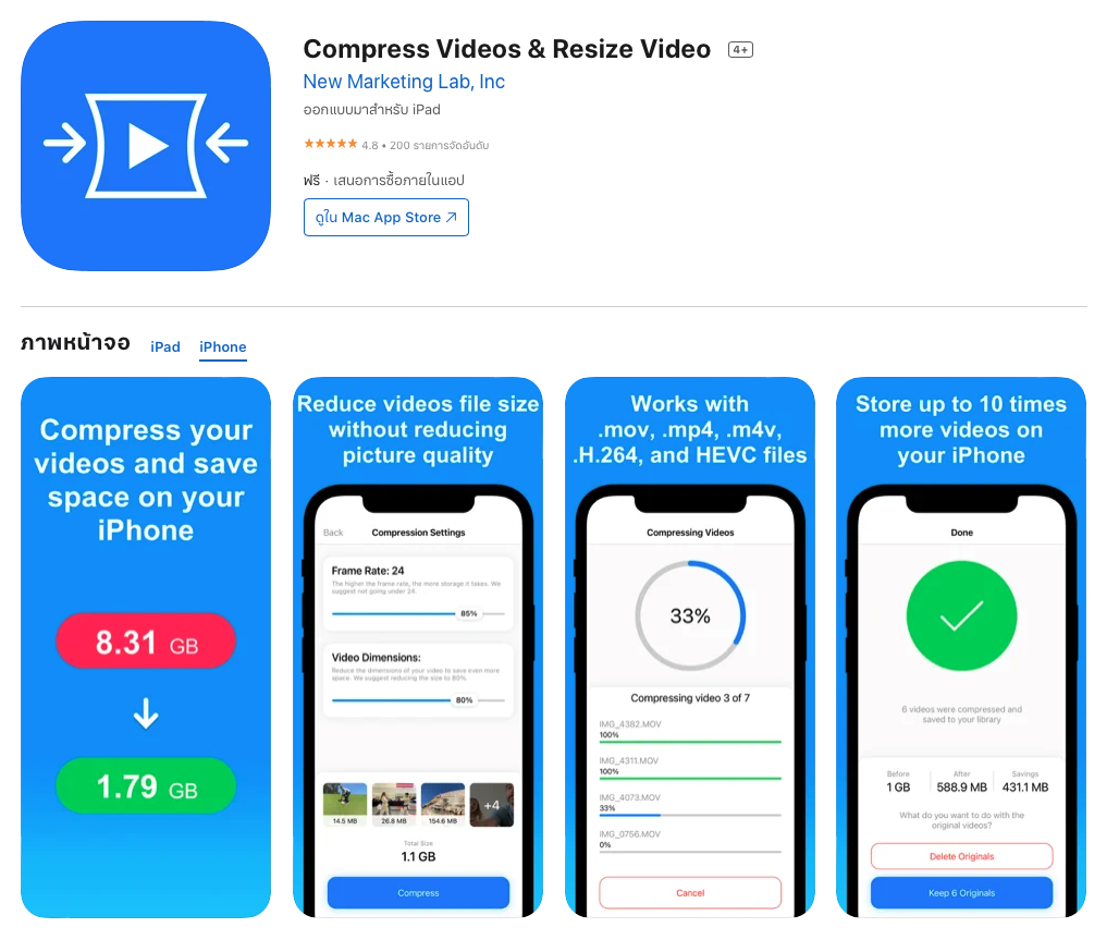แนะนำ Compress Videos & Resize Video แอปลดขนาดวิดีโอบน iPhone