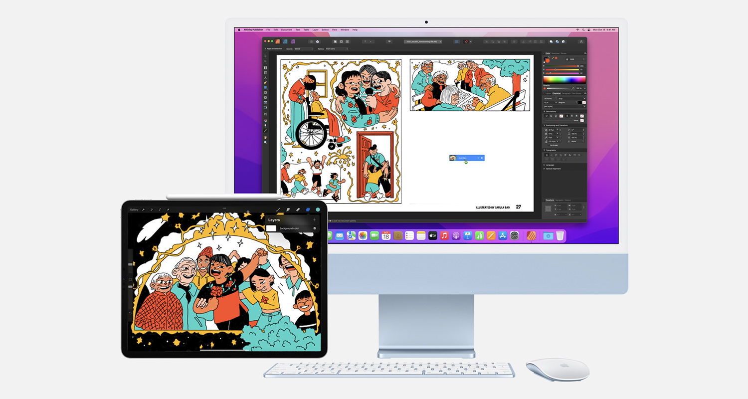 นอกจากนี้เรายังสามารถสะท้อนหน้าจอ iPad ไปยัง Mac ให้แสดงข้อมูลแบบเดียวกันได้ รวมถึงยังทำให้ iPad เป็นแผ่นรองวาดรูปอีกด้วย เพียงแค่สะท้อนหน้าจอ Mac ไปยัง iPad จากนั้นก็เปิดแอปที่รองรับ Sidecar อย่างเช่น แอป Illustrator, Affinity Photo, ZBrush ฯลฯ แล้วลากแอปไปยัง iPad จากนั้นก็ใช้ Apple Pencil เริ่มออกแบบงานได้เลย