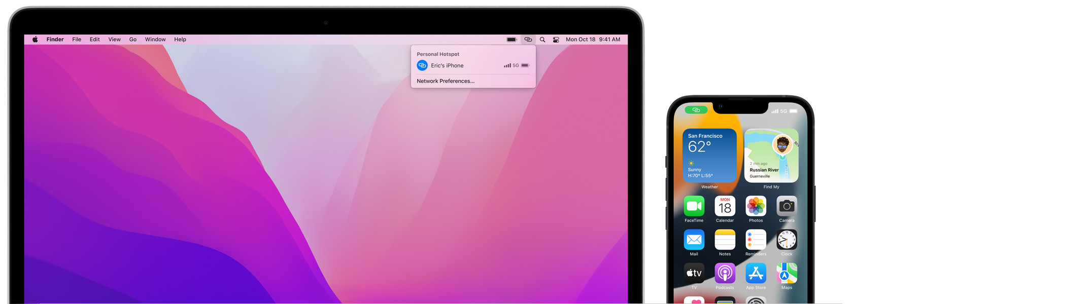 ถ้าหาก Mac ของเราไม่มี Wi-Fi ให้เชื่อมต่อ เราก็สามารถใช้งานฮอตสปอตส่วนบุคคลจาก iPhone หรือ iPad รุ่นเซลลูลาร์ได้ เมื่อ Mac อยู่ใกล้กับ iPhone หรือ iPad เราสามารถเลือก Wi-Fi เป็น iPhone หรือ iPad ของเราได้เลย โดยไม่ต้องเข้าไปตั้งค่าเปิดฮอตสปอตเพิ่มเติม