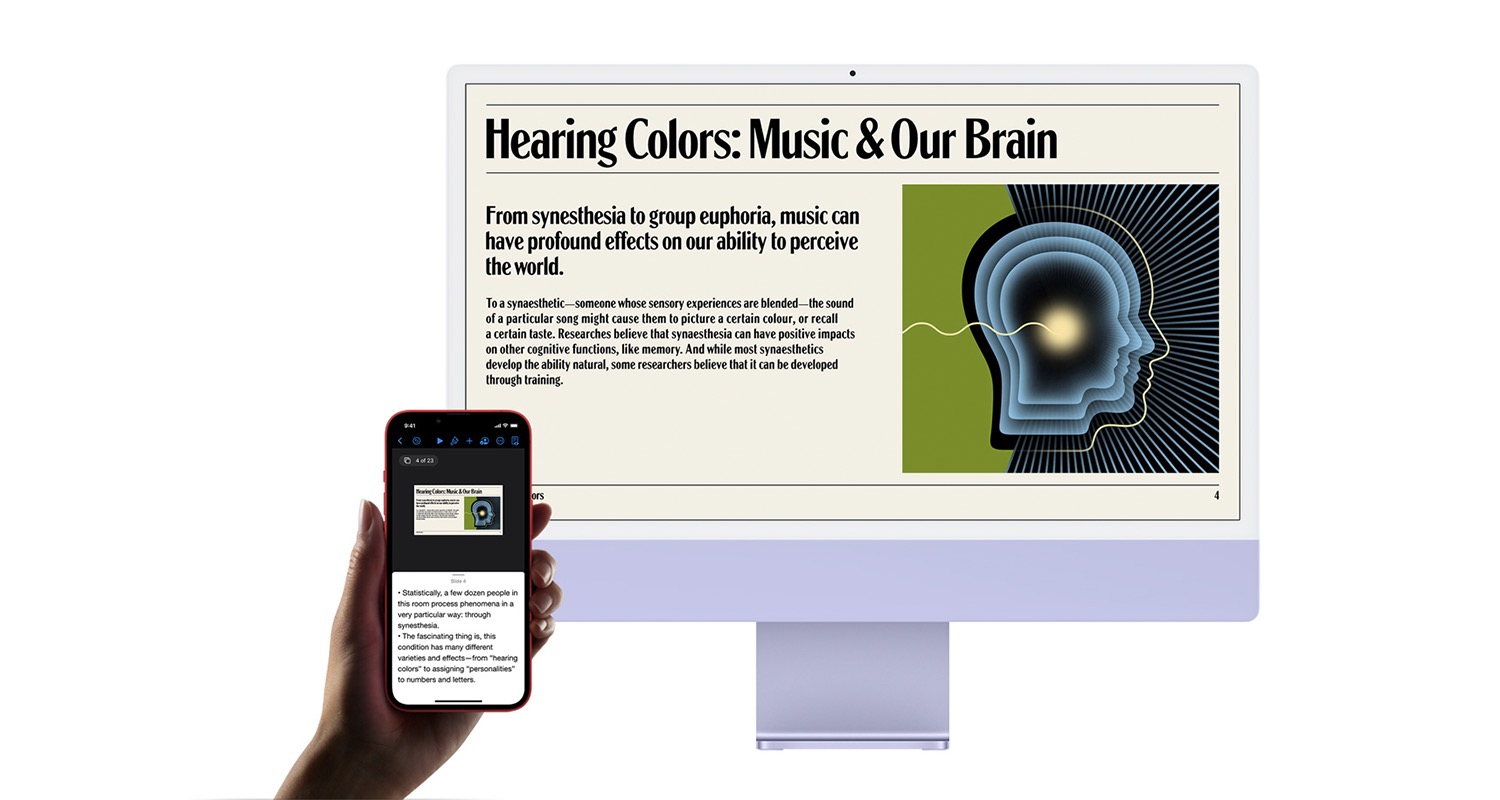 นอกจากนี้เรายังสามารถใช้ iPhone และ Apple Watch ควบคุมการนำเสนอ Keynote ได้อีกด้วย สะดวกมาก Continuity