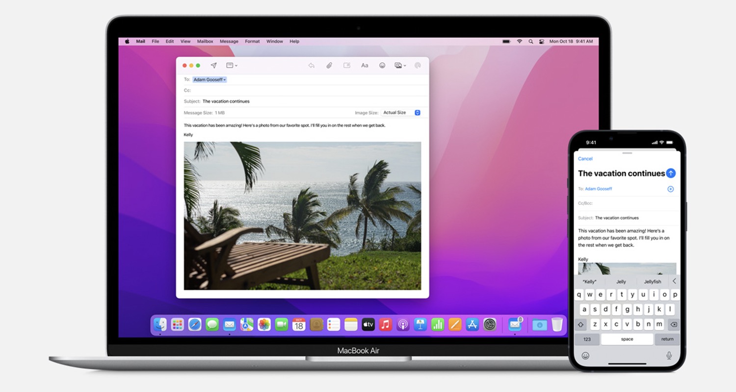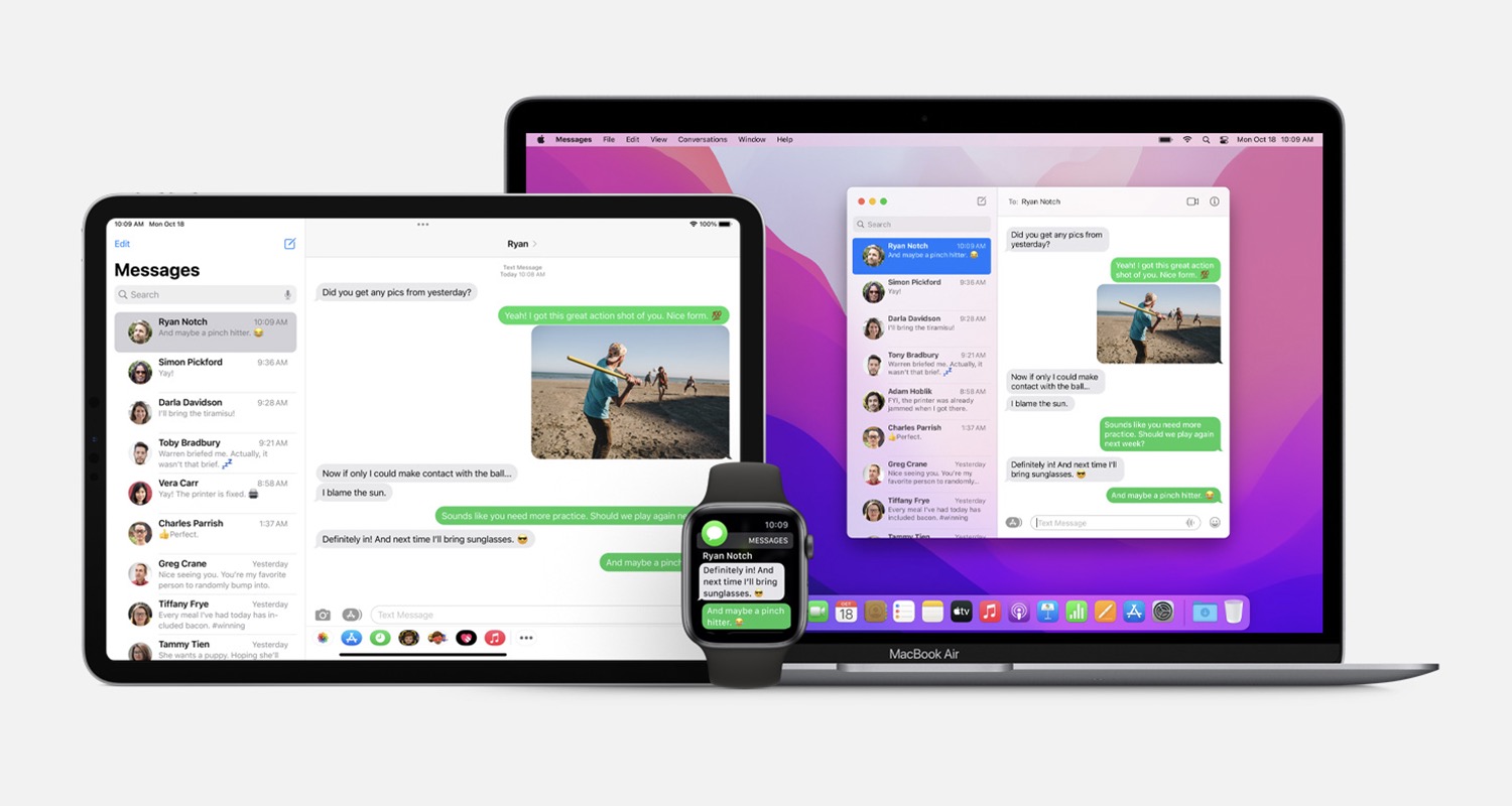 ถ้าหากเราใช้งานทั้ง iPhone และ Mac เราสามารถรับและส่งข้อความได้ทุกอุปกรณ์ ซึ่งข้อความจะอัปเดตตรงกันบนทุกอุปกรณ์ที่เราใช้งาน iCloud เดียวกัน ไม่ว่าเราจะใช้งานอุปกรณ์ไหนอยู่ ก็สามารถตอบข้อความหรือสนทนาผ่านแอป iMessage ได้อย่างต่อเนื่อง