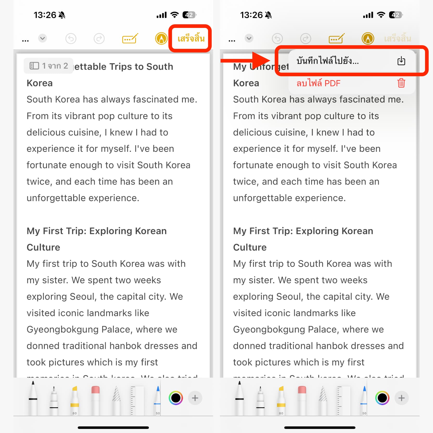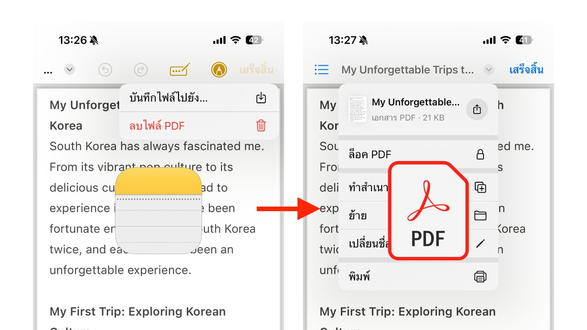 วิธีแปลงโน้ตให้เป็นไฟล์ PDF (iPhone, iPad)