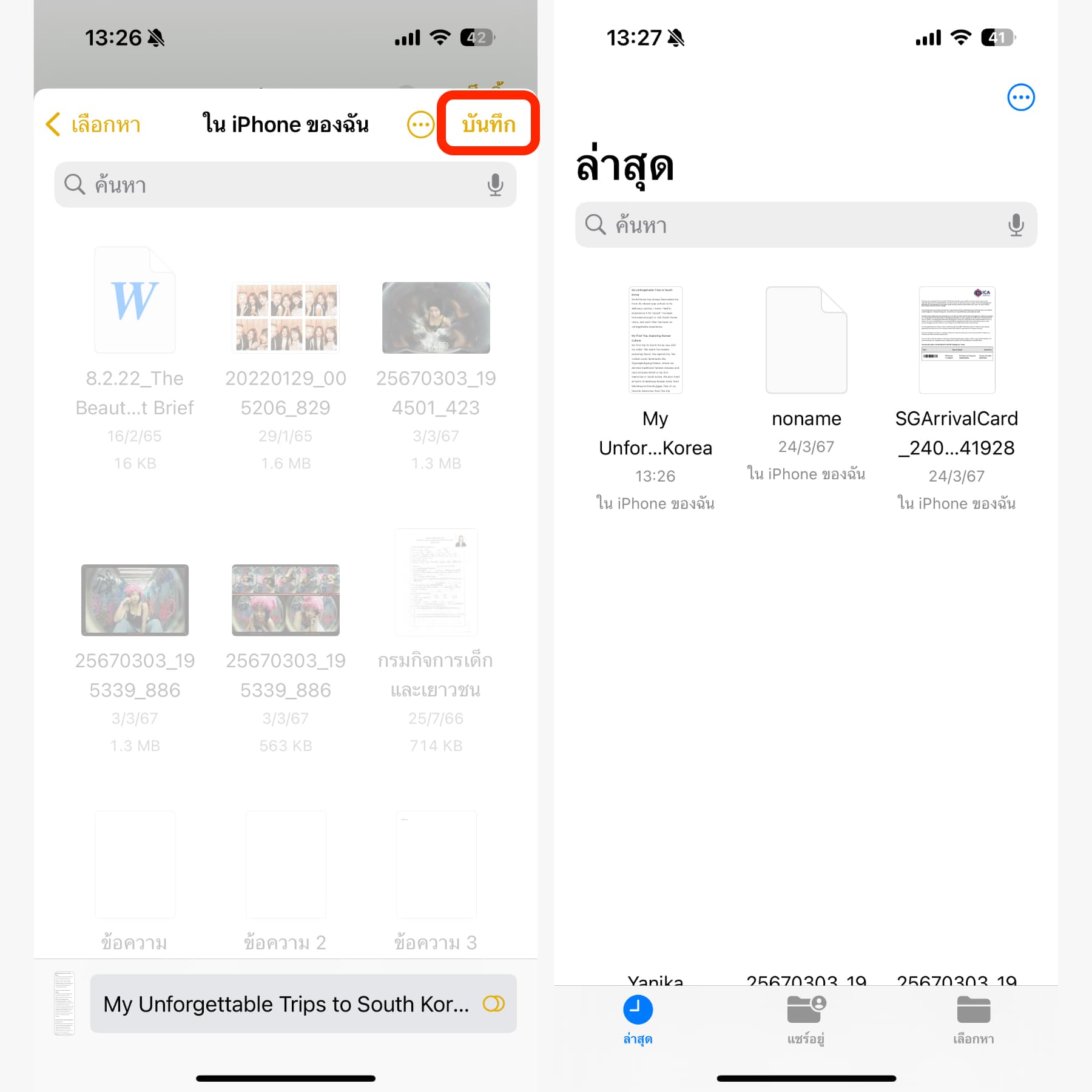 เปลี่ยนชื่อไฟล์ และแตะ “บันทึก” เพื่อบันทึกไฟล์ลงในแอปไฟล์ได้เลย!