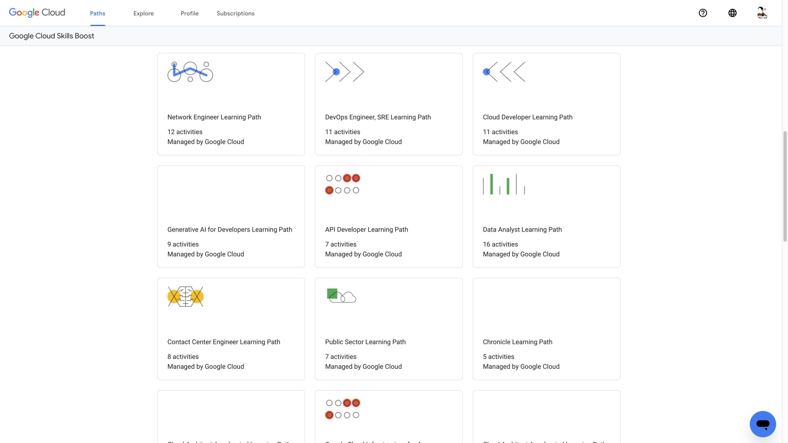 มาที่เว็บ Google Cloud พอเข้ามาจะมีคอร์สมากมายให้เราได้เลือกเรียน