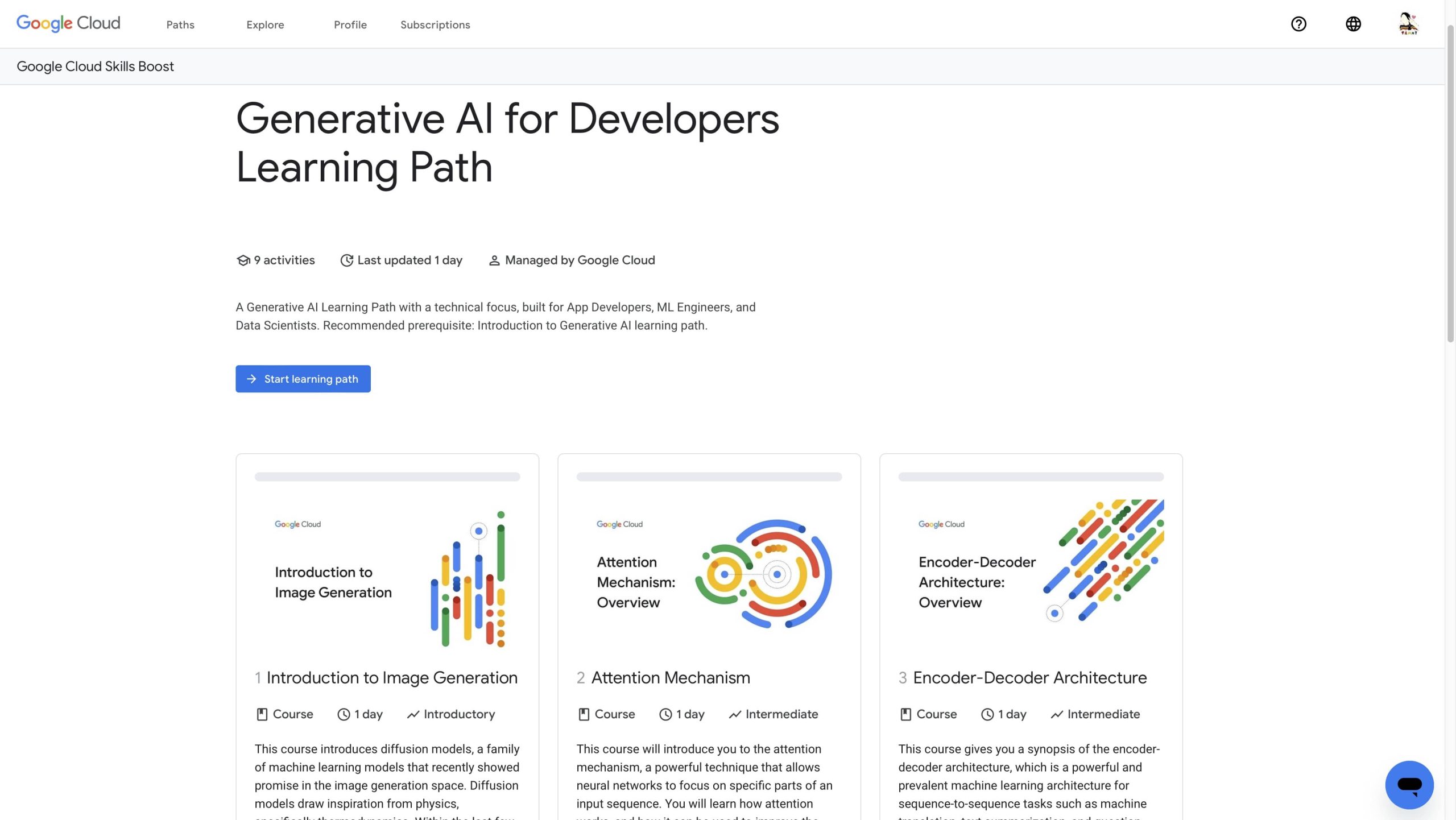 แล้วเลื่อนลงมา กด “Generative AI for Developer Path” เพื่อเข้าไปคอร์สเรียน AI