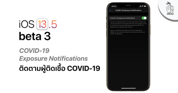 ใน iOS 13.5 beta 3 ระบบจะเปิดใช้ COVID-19 Exposure Notifications เป็นค่าเริ่มต้น แต่ผู้ใช้สามารถไปปิดการใช้งานได้