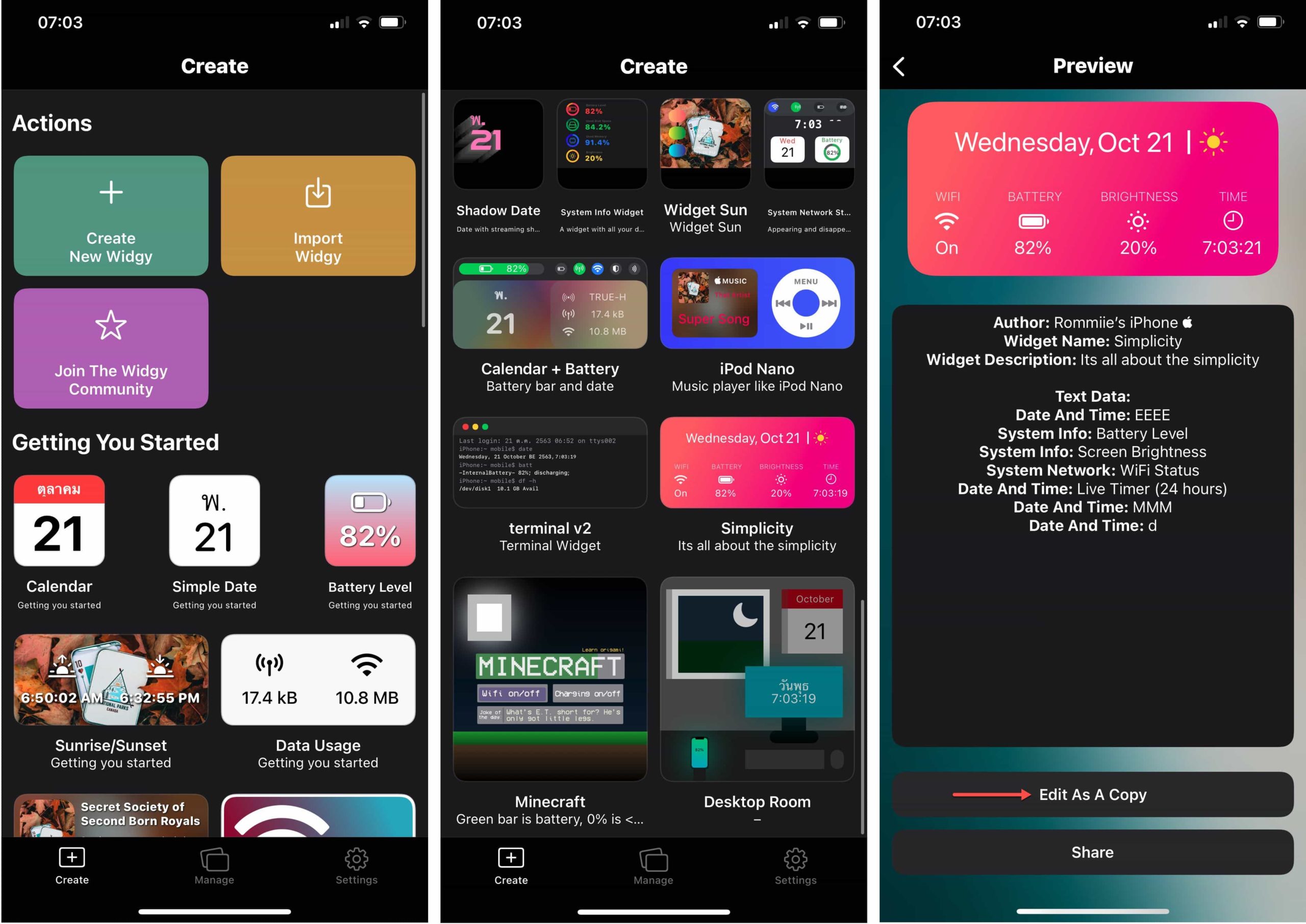 เริ่มต้นให้เราเลื่อนหาวิดเจ็ตต้นแบบที่อยากต่อยอดก่อน เมื่อเลือกได้แล้วก็แตะเข้าไป > แตะ “Edit As A Copy”