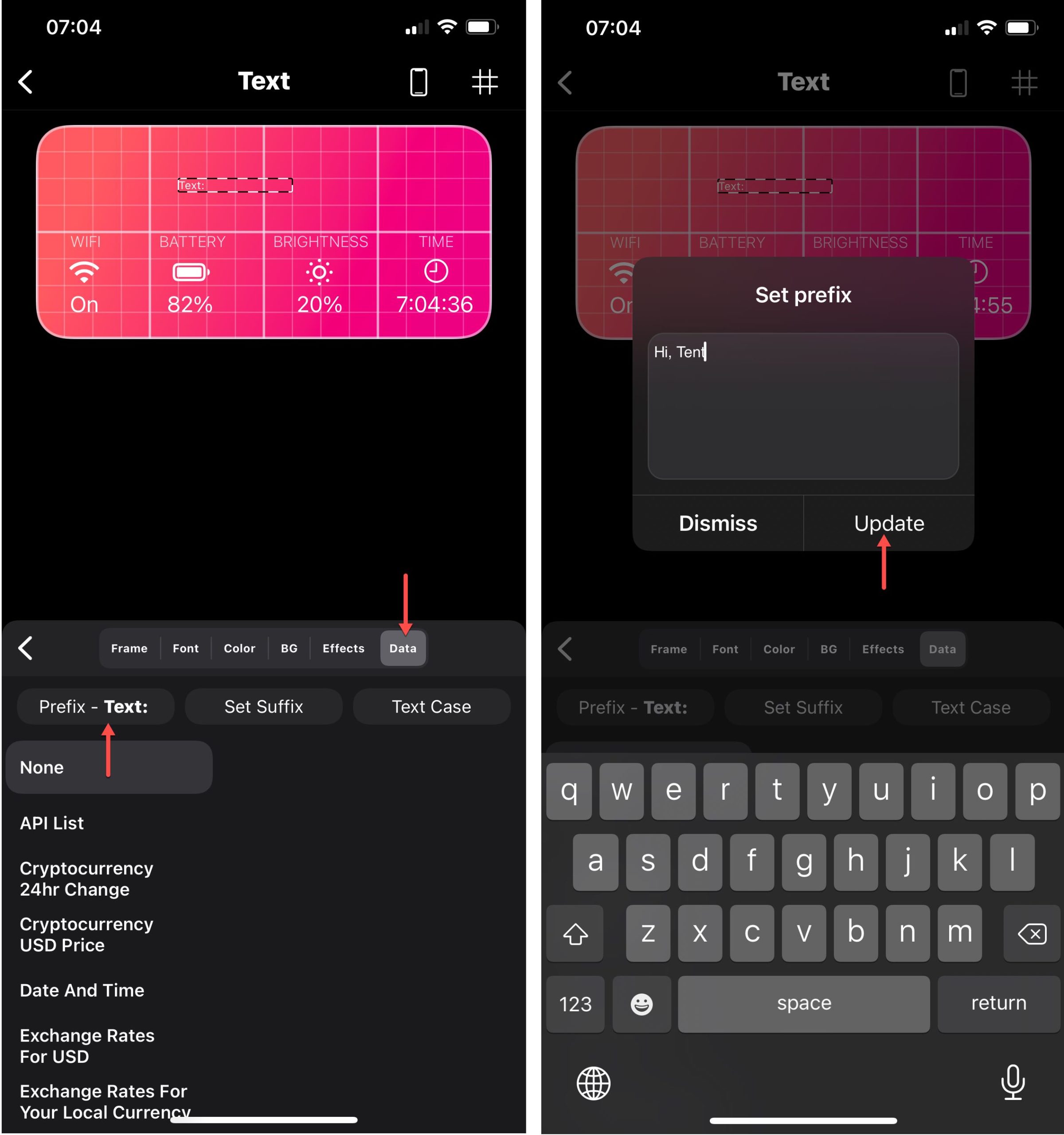 เพิ่มเสร็จแล้วก็ไปที่แถบ Data > แตะ Prefix แล้วแก้ไขตามต้องการ > เสร็จแล้วแตะ Update