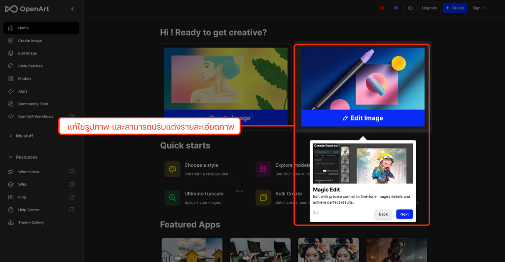มาทำความรู้จักเครื่องมือเบื้องต้น ของ OpenArt AI กันเถอะ