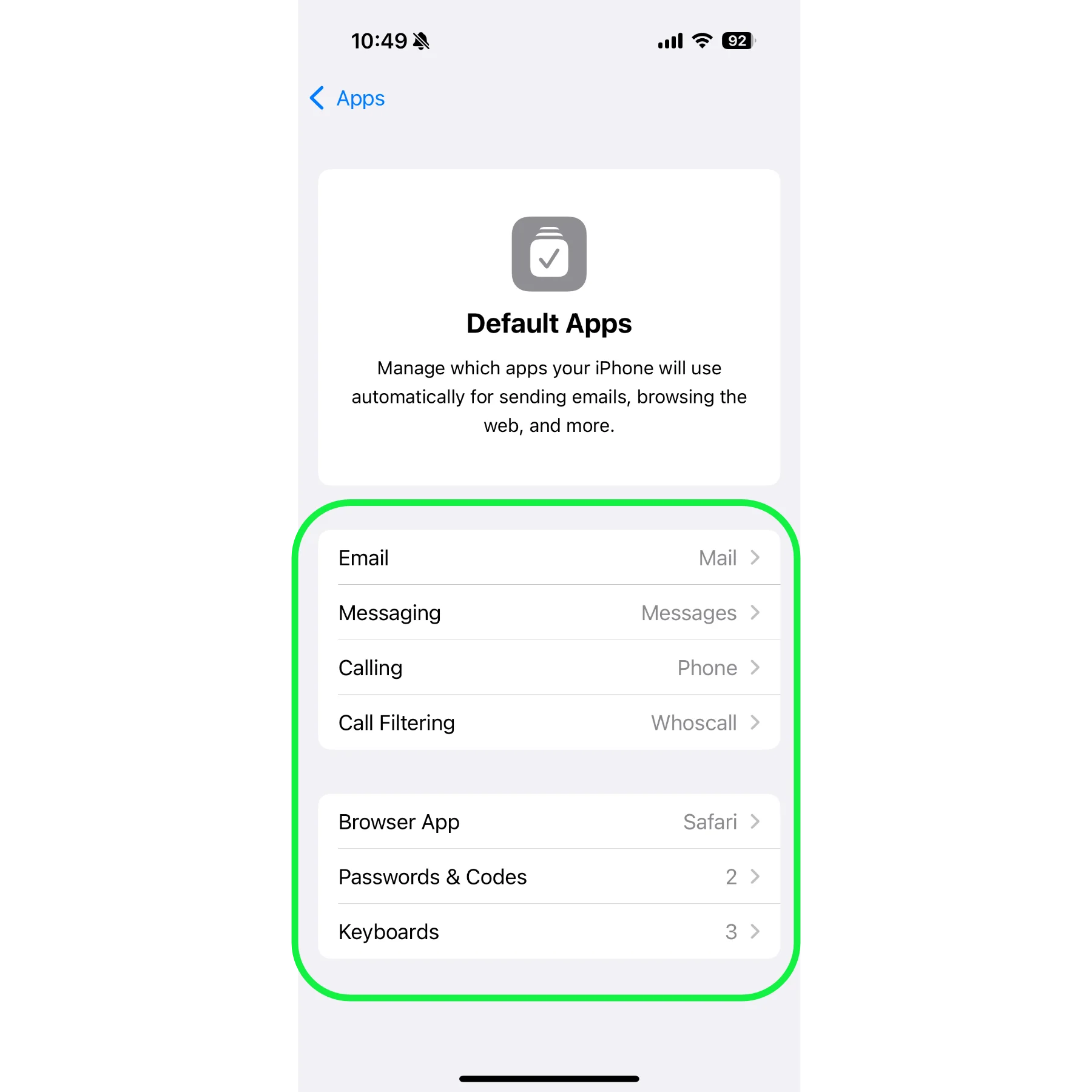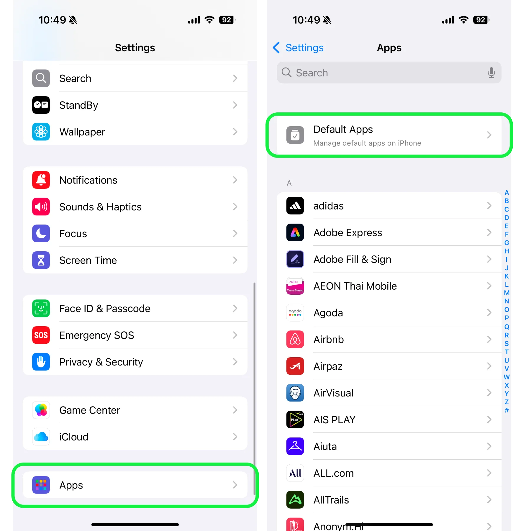 เลือกแอปสำหรับการโทร ส่งข้อความ, อีเมล ด้วย Default Apps ใน iOS 18.2
