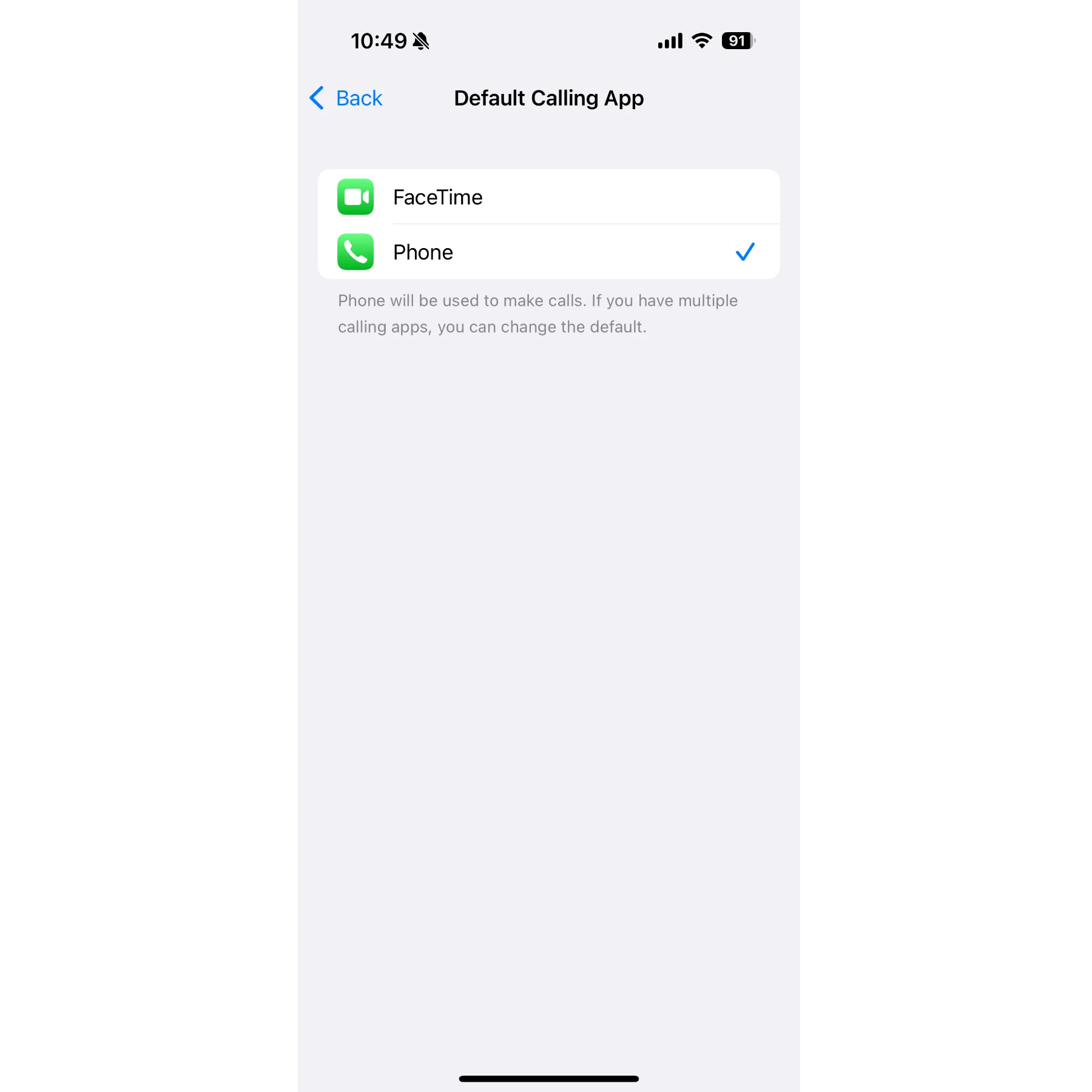 - การโทร (Calling): เลือกแอปที่ใช้ในการโทร เช่น โทรผ่าน FaceTime หรือโทรศัพท์ (ยังคงจำกัดแค่แอปของ Apple เช่น Phone หรือ FaceTime)