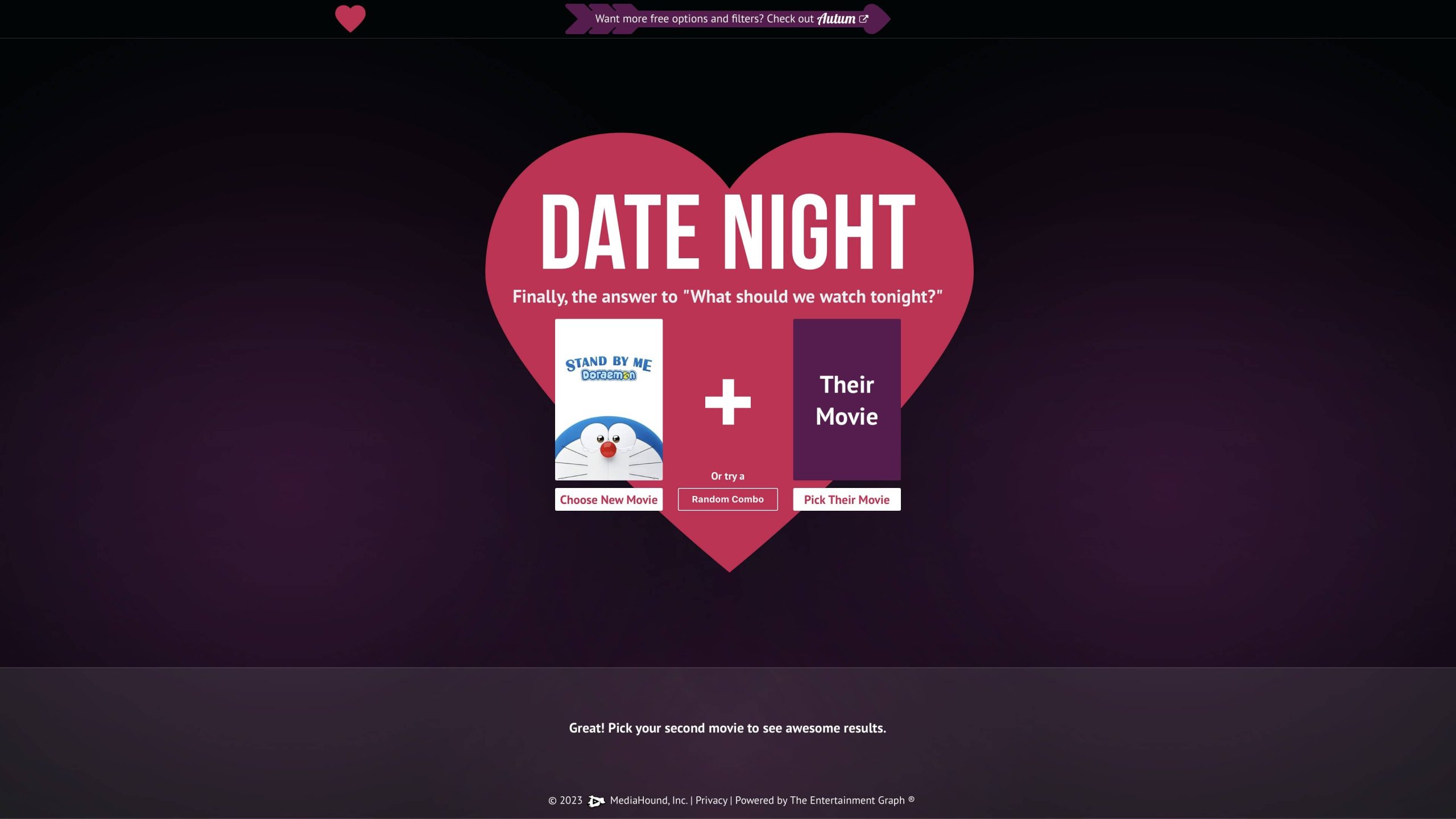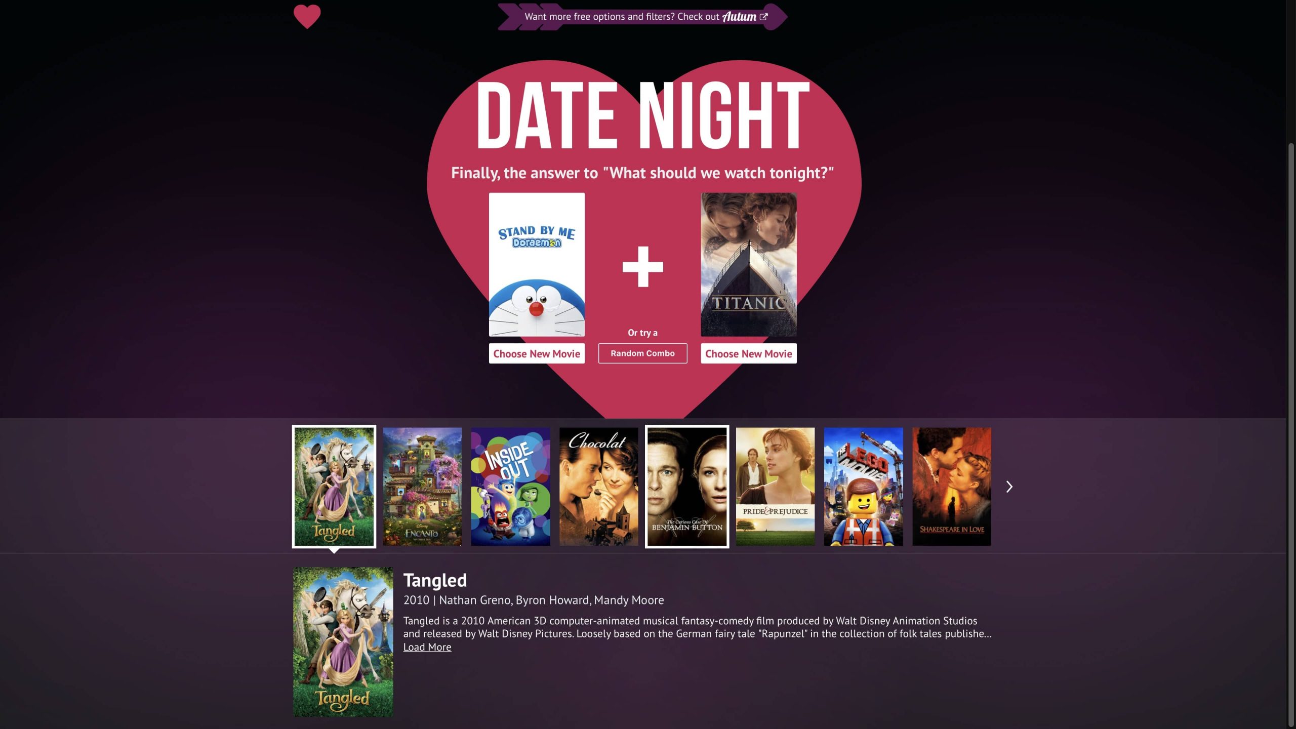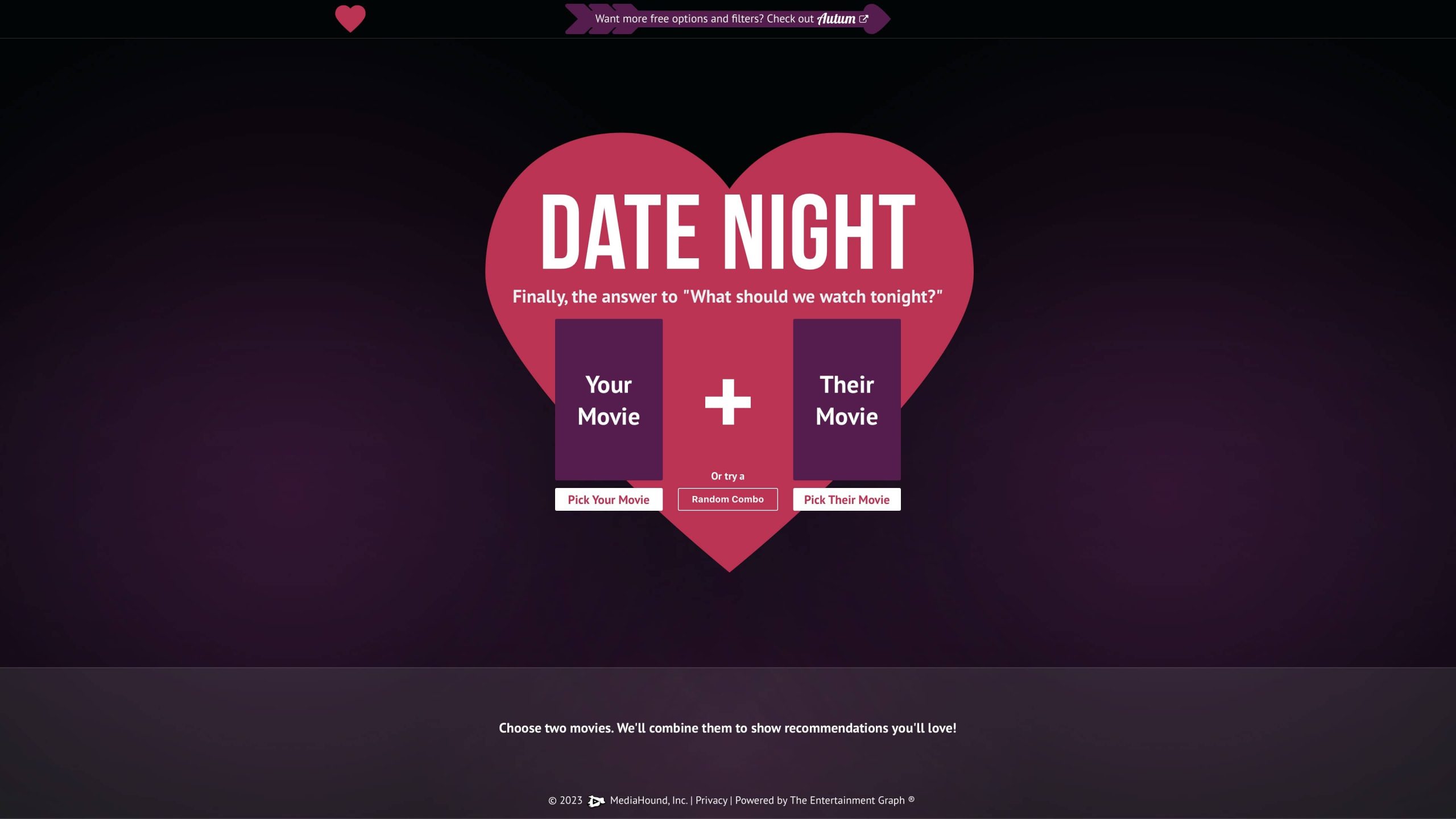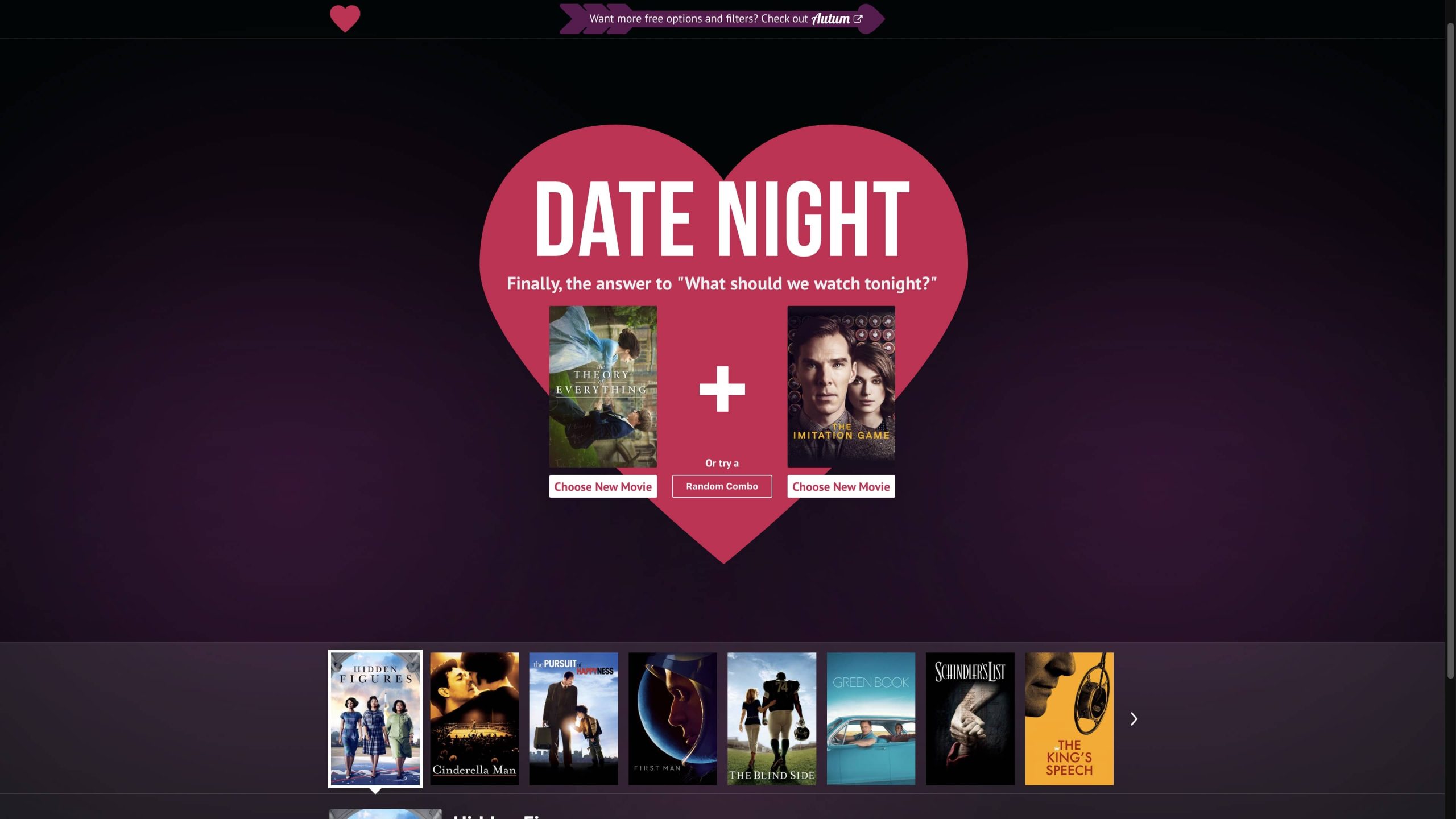 เพื่อน ๆ เคยประสบปัญหาชอบหนังคนละสไตล์กับเพื่อน หรือแฟน แล้วไม่รู้จะดูหนังอะไรเว็บ Datenightmovies ช่วยคุณได้ เว็บนี้จะสุ่มหนังจากเรื่องที่เรากับเพื่อนหรือแฟน เลือกไว้ 2 เรื่อง