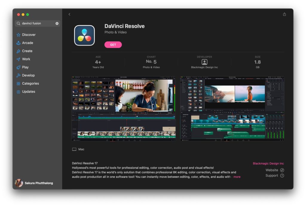 DaVinci Resolve มีให้เลือกดาวน์โหลดทั้งเวอร์ชันฟรีและไม่ฟรี สามารถดาวน์โหลดใช้งานได้ที่ Mac App Store