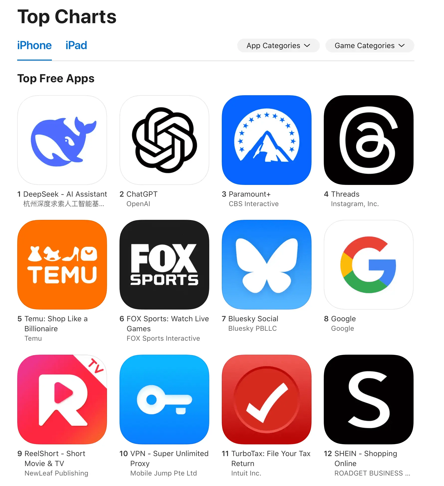 DeepSeek ขึ้นแท่นแอปยอดนิยมอันดับ 1 ใน App Store สหรัฐฯ