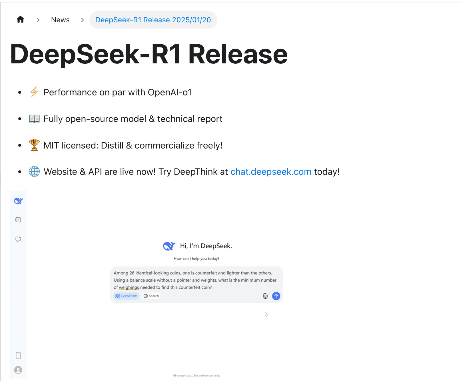 เมื่อวันที่ 20 ม.ค. 2025 ที่ผ่านมา, Liang Wenfeng ได้เปิดตัว “R1” โมเดล AI ใหม่ของ DeepSeek เขย่าตลาด AI อย่างแรง! เนื่องจาก LLM ของโมเดล AI ตัวนี้ทำงานได้ดีเทียบเท่าและแซงหน้า AI ของ OpenAI, Google และ Meta ได้