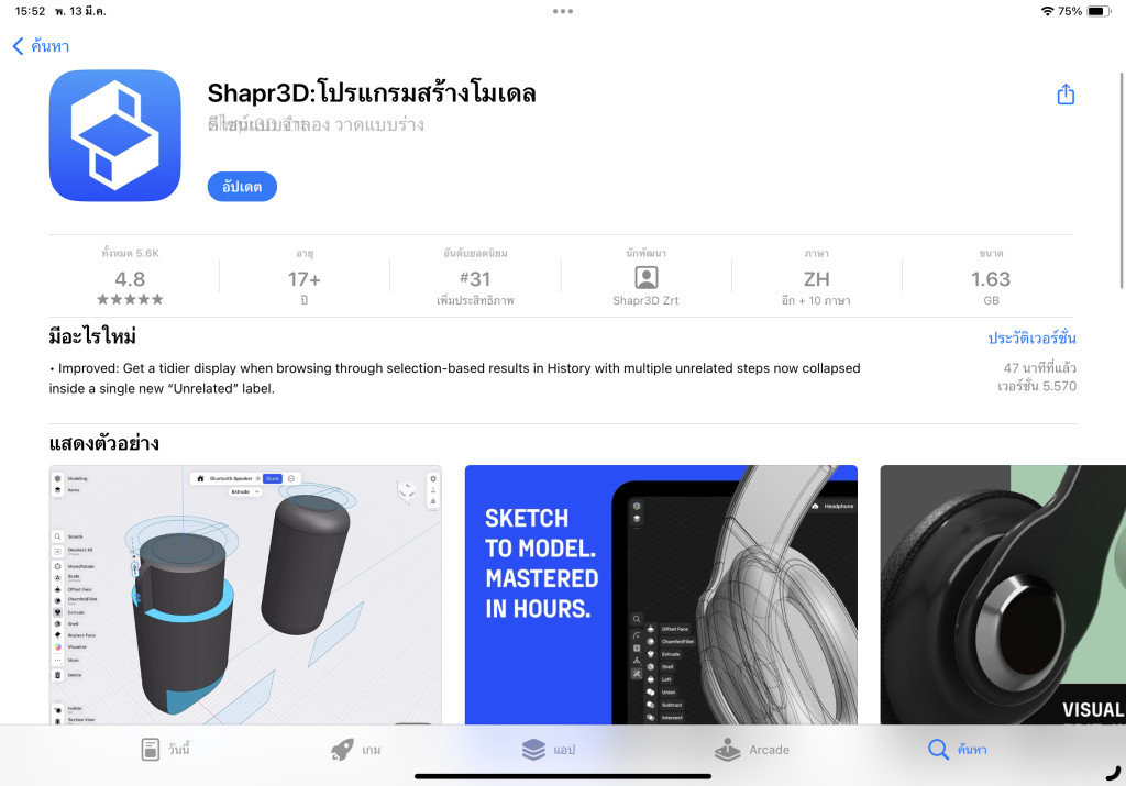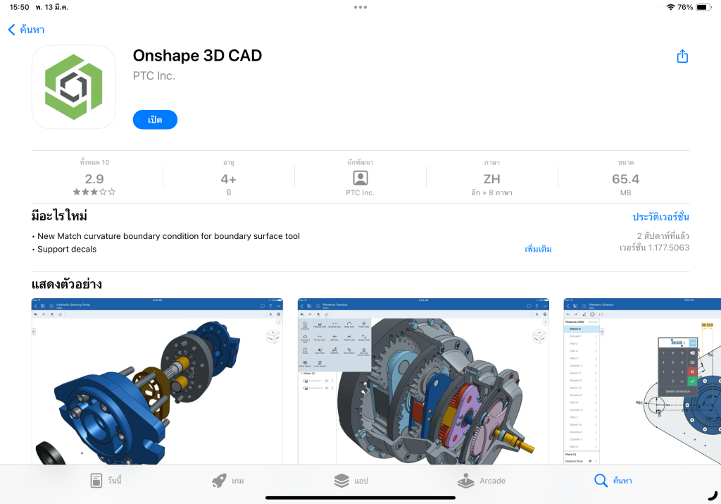 • การออกแบบ 3D ในแอป สามารถรองรับการสร้างโมเดล 3D sculpting การประกอบชิ้นส่วน การเขียนแบบ 2D