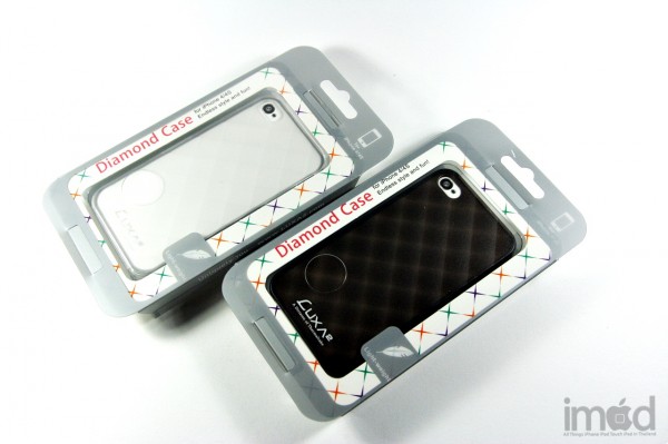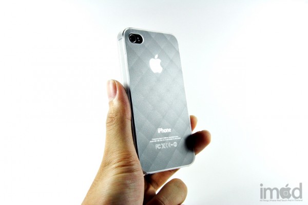เคสสีขาวเมื่อใส่กับ iPhone สีดำดูแล้วค่อนข้างดูดีมีระดับมากๆ ครับ จะมองเห็นด้านหลังลวดลายจะเป็นสี่เหลี่ยมตารางเหมือนรูปทรงของเพชร มันก็เลยได้ชื่อว่า Diamond Case ผิวจะนูนเล็กน้อยนะครับจะไม่เรียบเท่ากันซะทีเดียว จับแล้วจะรู้สึกถึงความนูนของมันได้