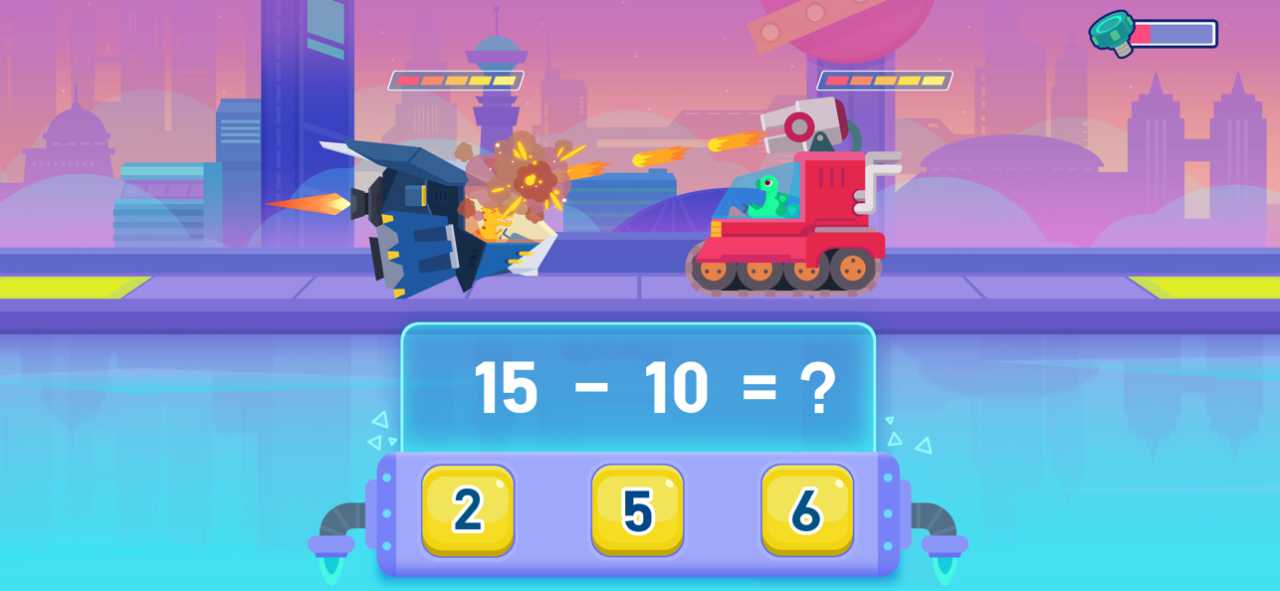 เกมมือถือต่อสู้ PvP ดวลกันแบบหนึ่งต่อหนึ่งด้วยการแข่งคณิตคิดไว (บวก ลบ) ที่ช่วยเพิ่มทักษะทางด้านคณิตศาสตร์ให้กับเด็กๆ ได้เป็นอย่างดี แถมเล่นสนุกได้ด้วยตัวละคร ‘ไดโนเสาร์’ ที่เด็กๆ สามารถประดิษฐ์รถถังไดโนเสาร์ด้วยตนเอง พร้อมนำมาสู้ศึกได้ด้วย