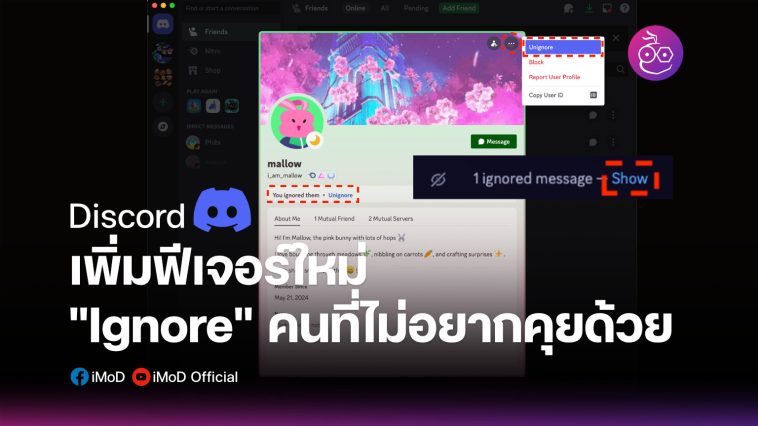 ฟีเจอร์ลดการปะทะ! Discord เพิ่มฟีเจอร์ใหม่ล่าสุด ปุ่ม “Ignore” คนที่ไม่อยากคุยด้วย ลาขาดโดยที่อีกฝ่ายไม่รู้ตัว