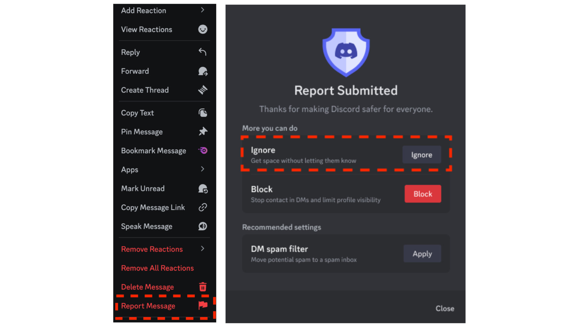 - หลังจากส่งรายงาน คุณจะสามารถเลือกตัวเลือก “Ignore” ในเมนู “More you can do”