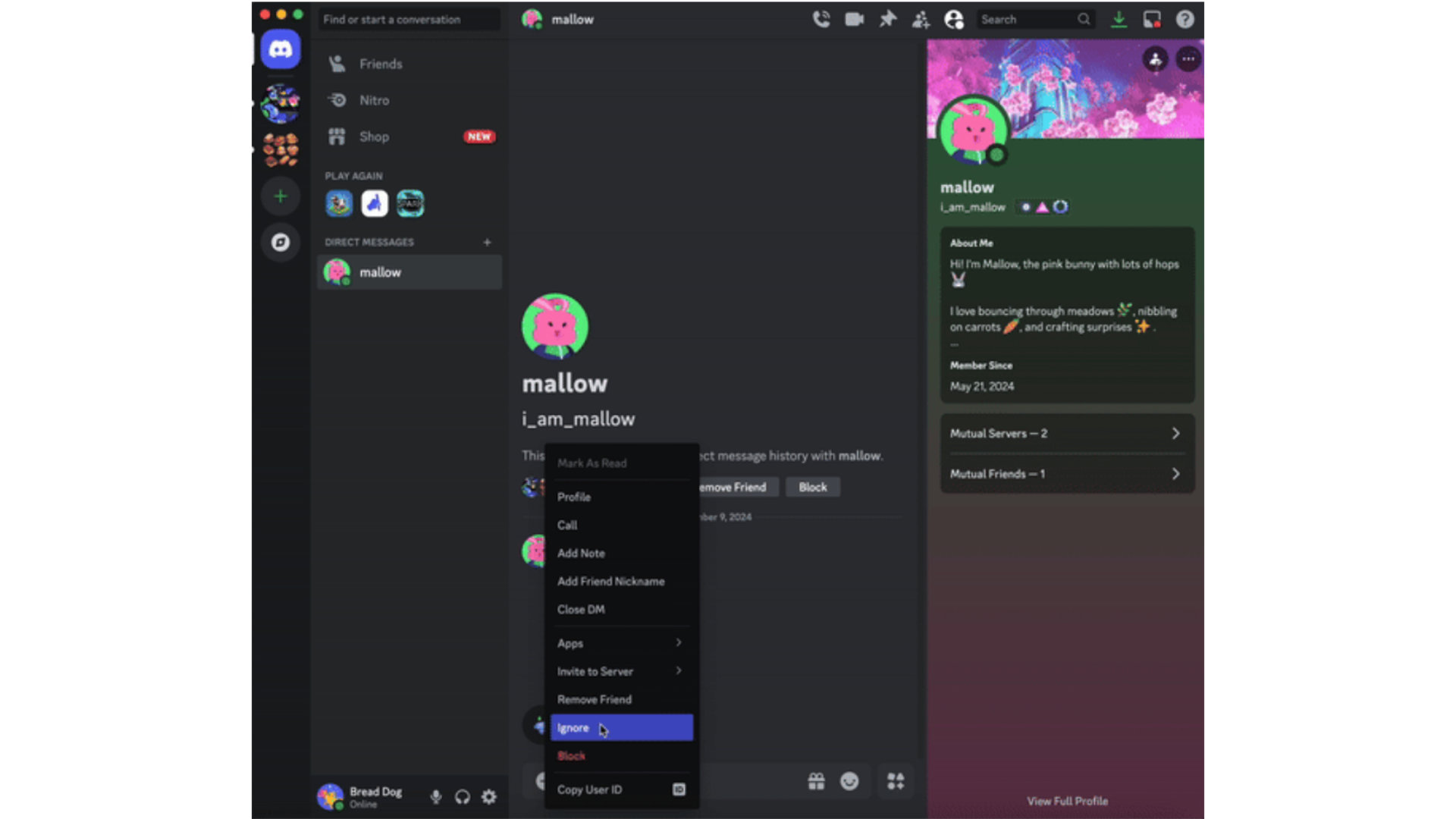 วิธีการใช้งานฟีเจอร์ Ignore ใน Discord