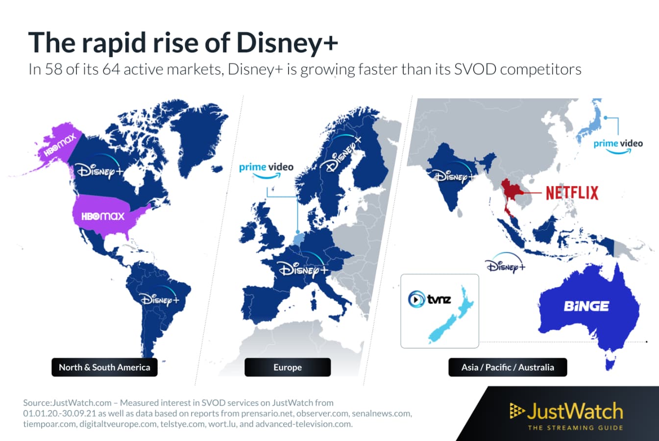 ในตอนนี้ Disney+ มีผู้สมัครรับบริการทั่วโลก 118.1 ล้านคนทั่วโลก เทียบกับเดือนพฤศจิกายนปี 2020 แล้ว Disney+ มีผู้สมัครรับบริการ 73.7 ล้านคน เห็นได้ว่ามีการเติบโตที่สูงมาก เพราะมีจำนวนรู้สมัครรับบริการเพิ่มมาเกือบเท่าตัวในปีเดียว