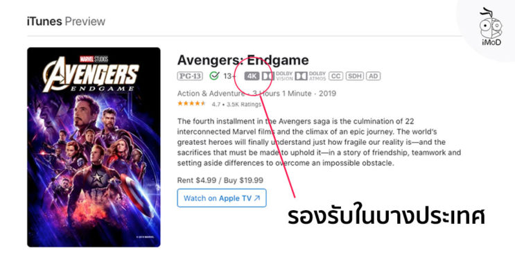 ภาพยนตร์เครือ Disney ที่ปรับการแสดงเป็น 4K ใน iTunes Store นั้นไม่ได้รองรับทุกประเทศ ซึ่งในไทยก็ยังรองรับการแสดงแบบ HD เป็นความละเอียดสูงสุดเช่นเดิม