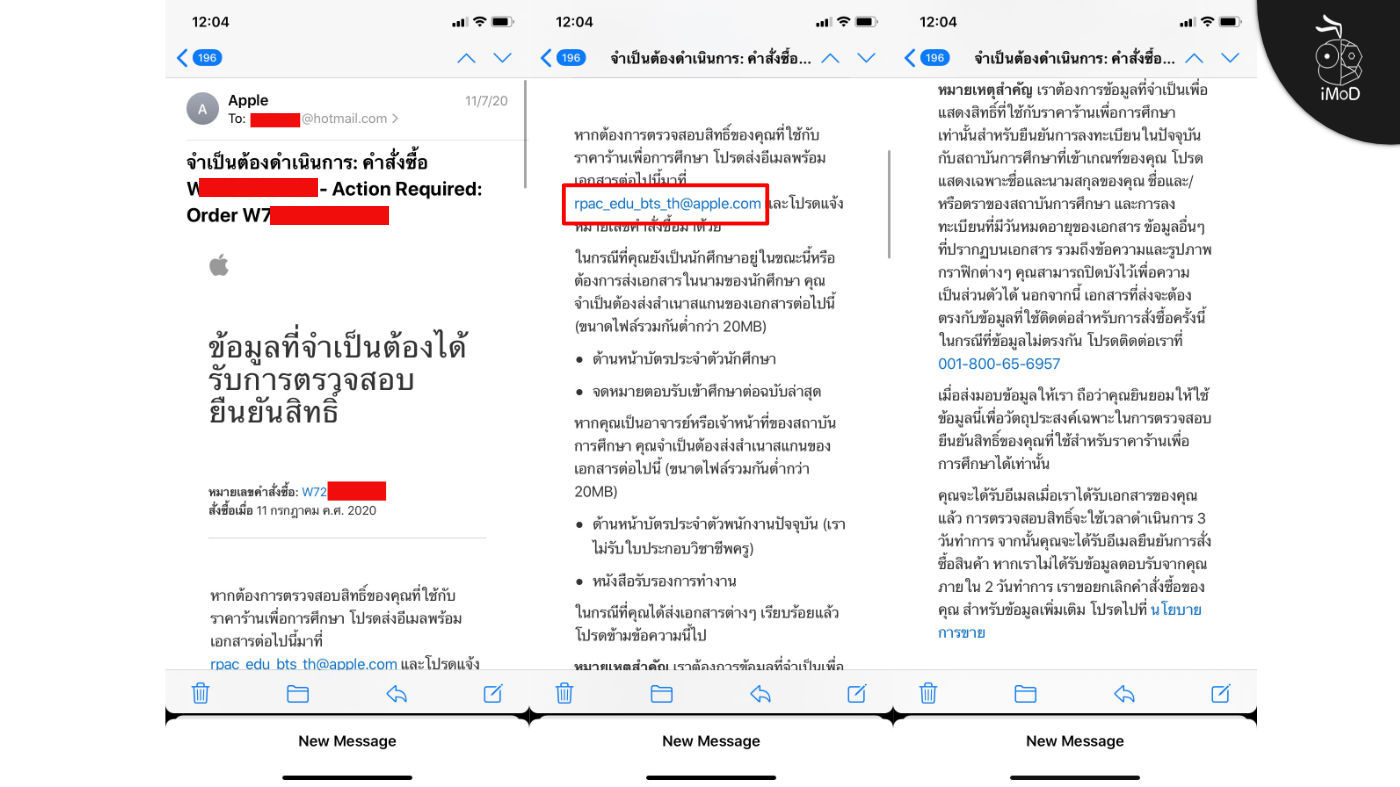 นี่คืออีเมลที่เราจะได้รับจากทาง Apple โดยระบุว่าเราต้องส่งเอกสารกลับไปยืนยันสิทธิ์เสียก่อน