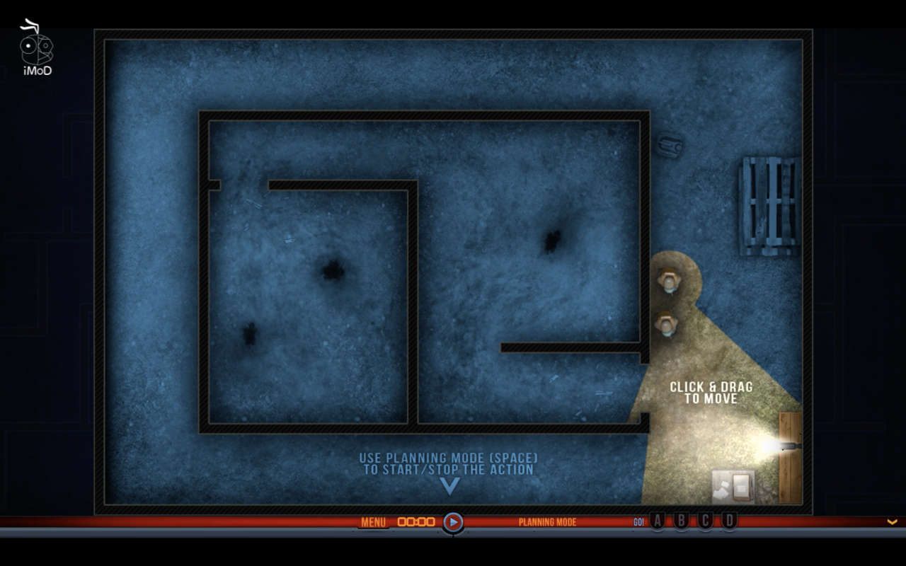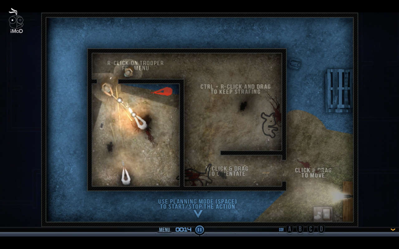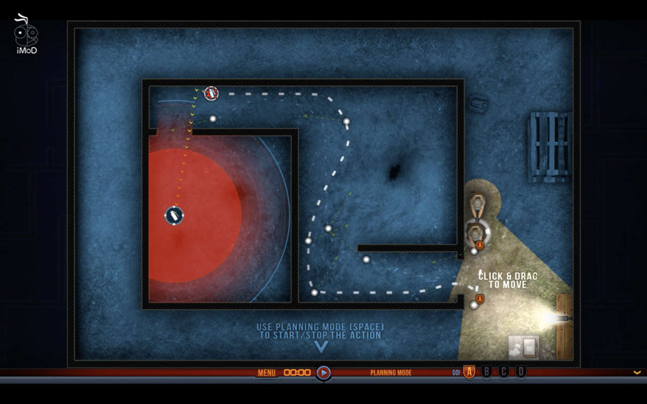 โดยเราจะต้องวิเคราะห์เส้นทางแล้วทำการลากเส้นนำพาหน่วย SWAT ทั้ง 2 คน เดินไปตามซอกมุมต่างๆ จัดวางแทคติกและตำแหน่งการเดินให้ดี พร้อมกับลากมุมมองการมองเห็นของทหาร รวมถึงการใช้ระเบิดควันในบางพื้นที่เพื่อจู่โจมกลุ่มผู้ก่อการร้ายนั่นเอง ดังรูปด้านล่างนี้