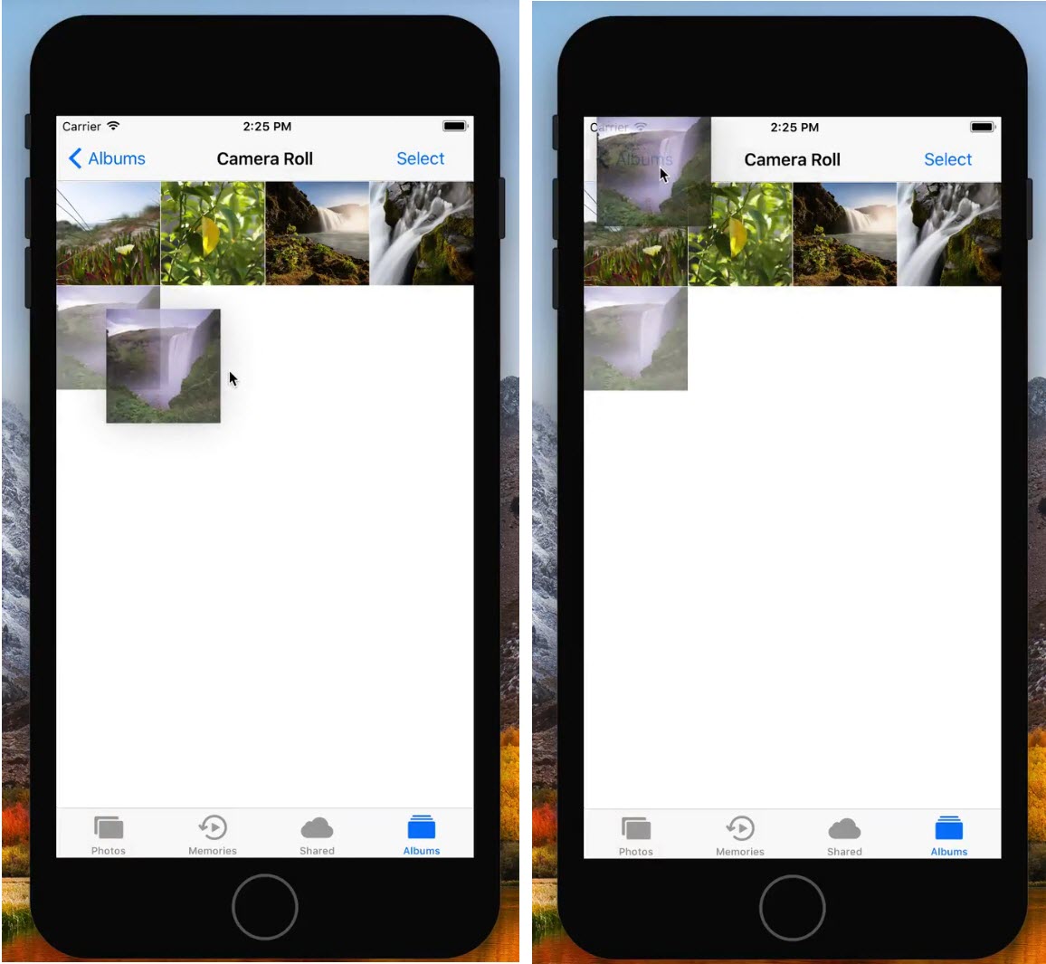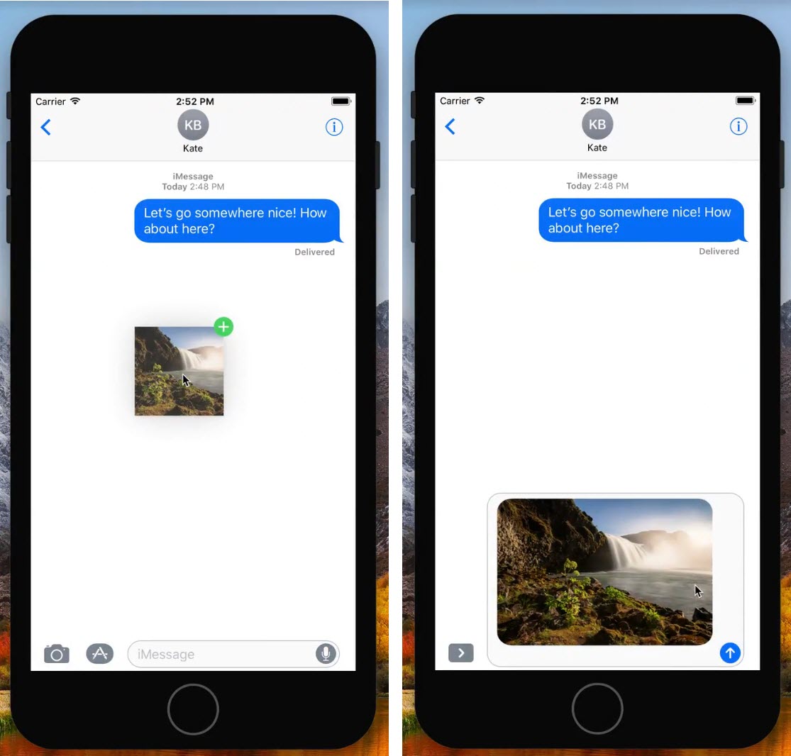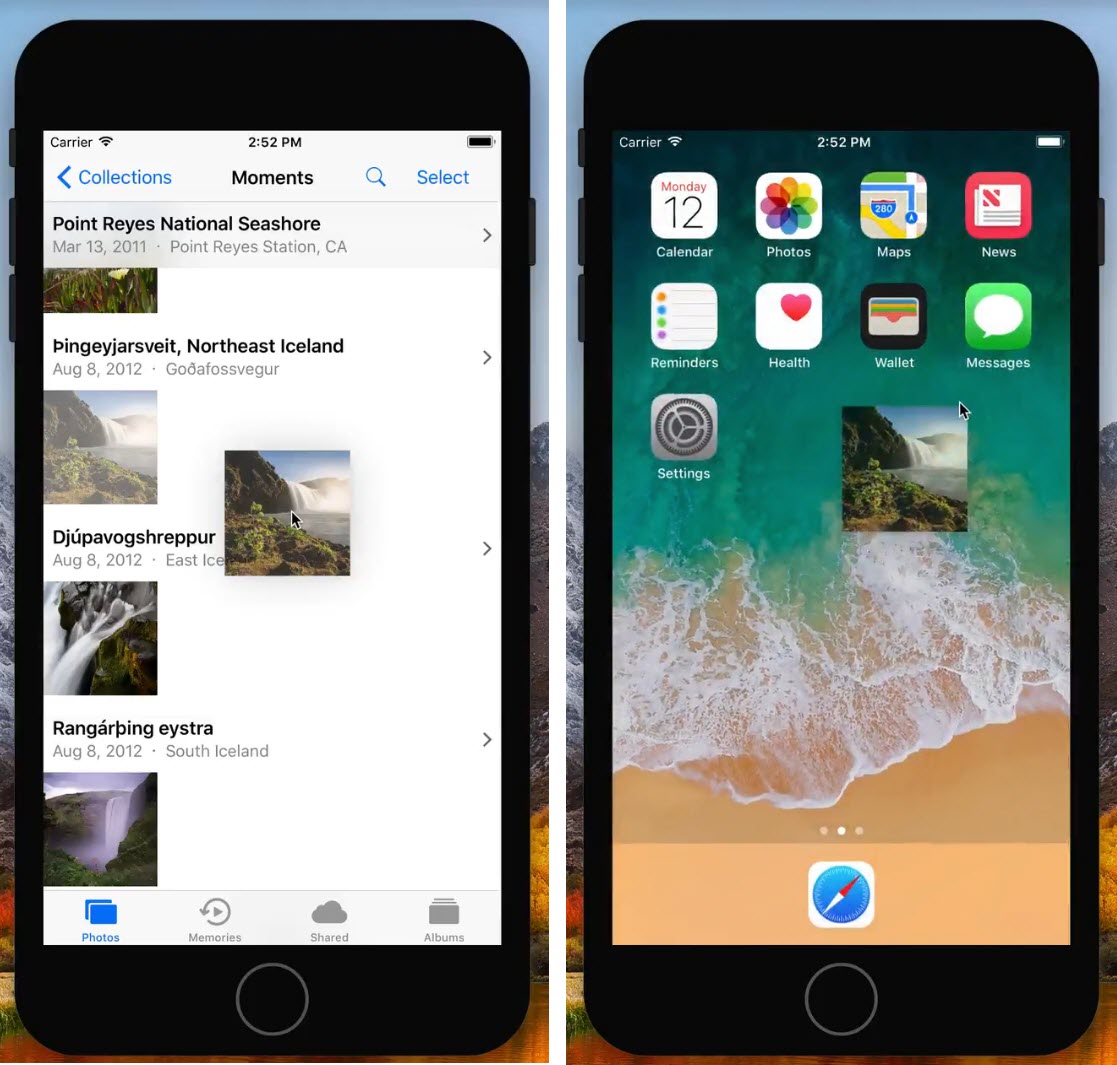 จากการทดสอบของนักพัฒนาพบว่า สามารถลากไฟล์รูปภาพ (Drag) จากแอป Photo ไปวาง (Drop) ไฟล์รูปภาพ iMessage เพื่อส่งข้อวามได้ นอกจากนั้นยังสามารถลากข้อความหรือรูปภาพย้อนกลับไปมาแต่ละหน้าจอของแอปที่เปิดอยู่ได้ด้วย